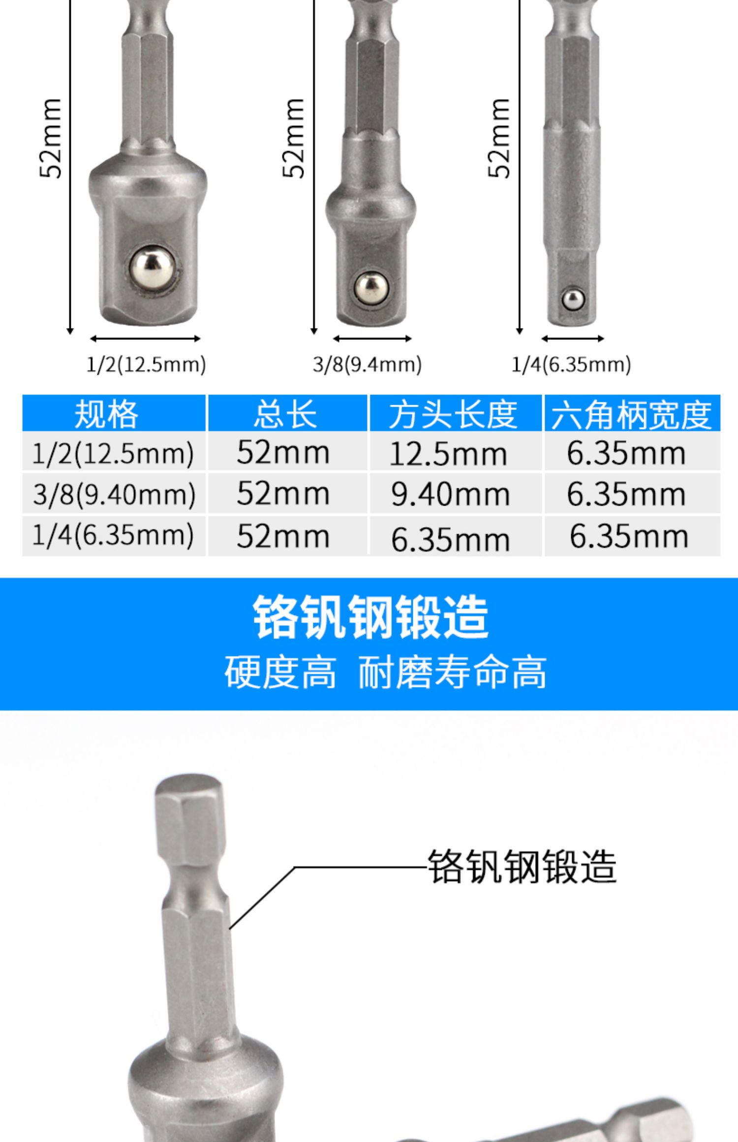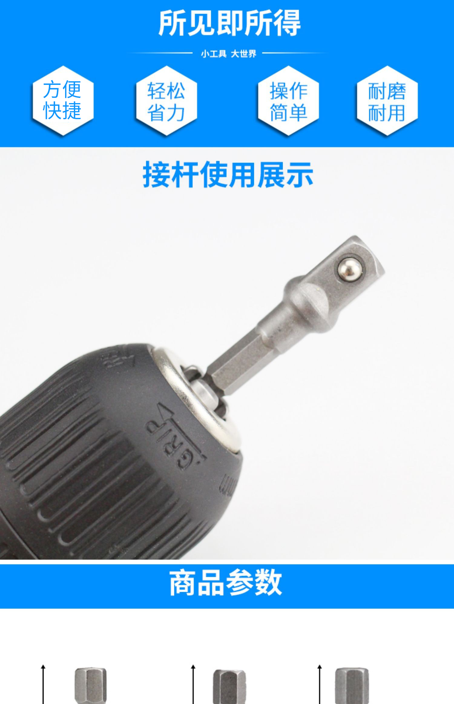 llave eléctrica conmutación conector de mango hexagonal junta cuadrangular taladro eléctrico de mano rodamiento eléctrico cabeza de manguito alargada barra de enlace