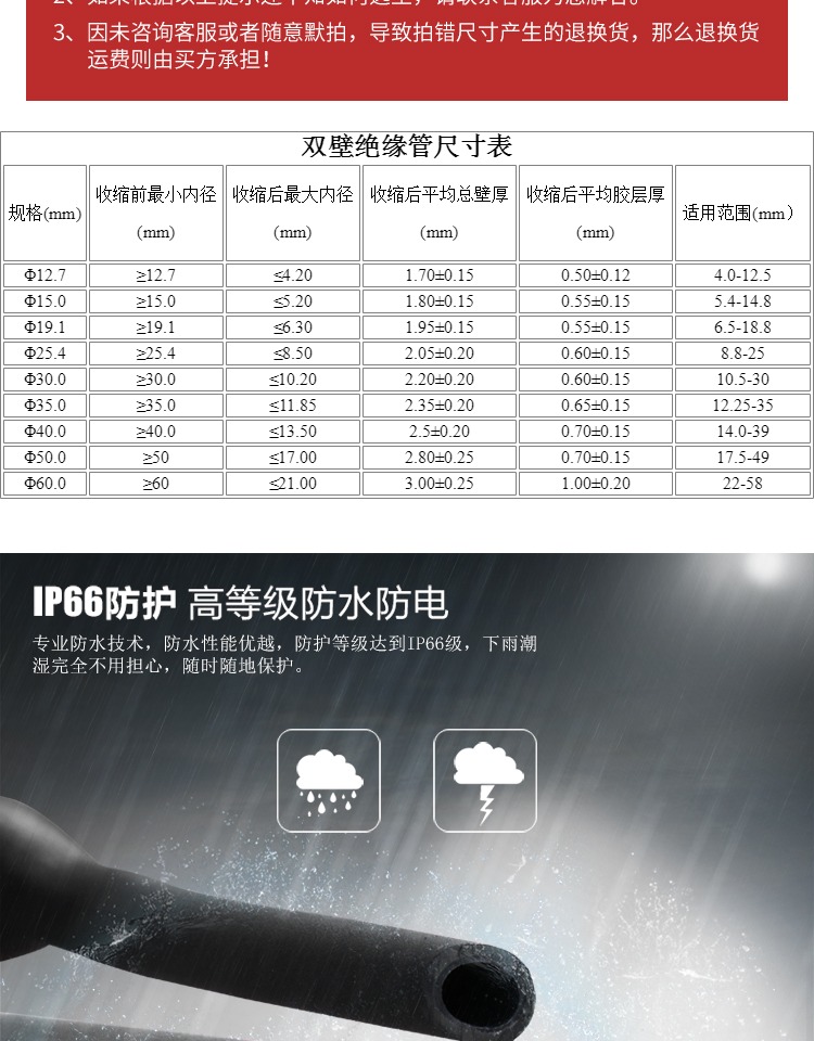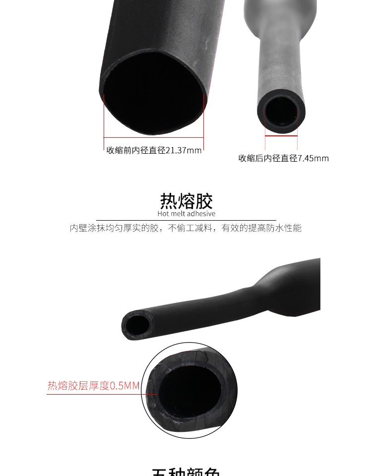 Aislamiento 3 veces doble pared pegamento tubo de contracción térmica espesado pegamento impermeable eléctrico contracción contracción 12.7-60m