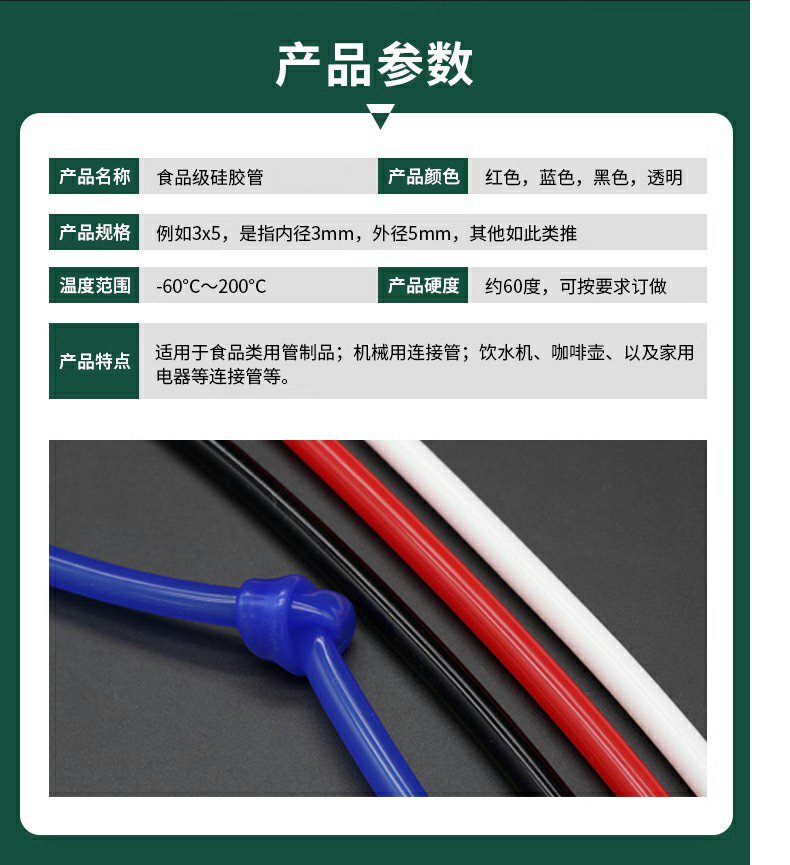 | Especificaciones y modelos | [las especificaciones se expresan como: diámetro interior x diámetro exterior, unidad: mm, Mm], 0,5x1 negro (5 metros), 1x2 negro (5 metros), 1x3 negro (5 metros), 2x4 negro (5 metros), 2x5 negro (2 metros), 3x4 negro (5 metros), 3x5 negro (5 metros), 3x6 negro (2 metros), 4x6 negro (5 metros), 4x7 negro (2 metros), 4x8 negro (2 metros), 5x8 negro (5 metros), 6x8 negro (2 metros), 6x9 negro (2 metros), 6x10 negro (1 metro), 7x9 negro (2 metros), 7x9 negro 7x10 negro (1 metro), 8x10 negro (1 metro), 8x12 negro (1 metro), 9x12 negro (1 metro), 10x13 negro (1 metro), 10x14 negro (1 metro), 10x16 negro (1 metro), 12x15 negro (1 metro), 12x16 negro (1 metro), 14x18 negro (1 metro), 16x21 negro (1 metro), 18x24 negro (1 metro), 20x24 negro (1 metro), 25x31 negro (1 metro), 32x38 negro (1 metro) |