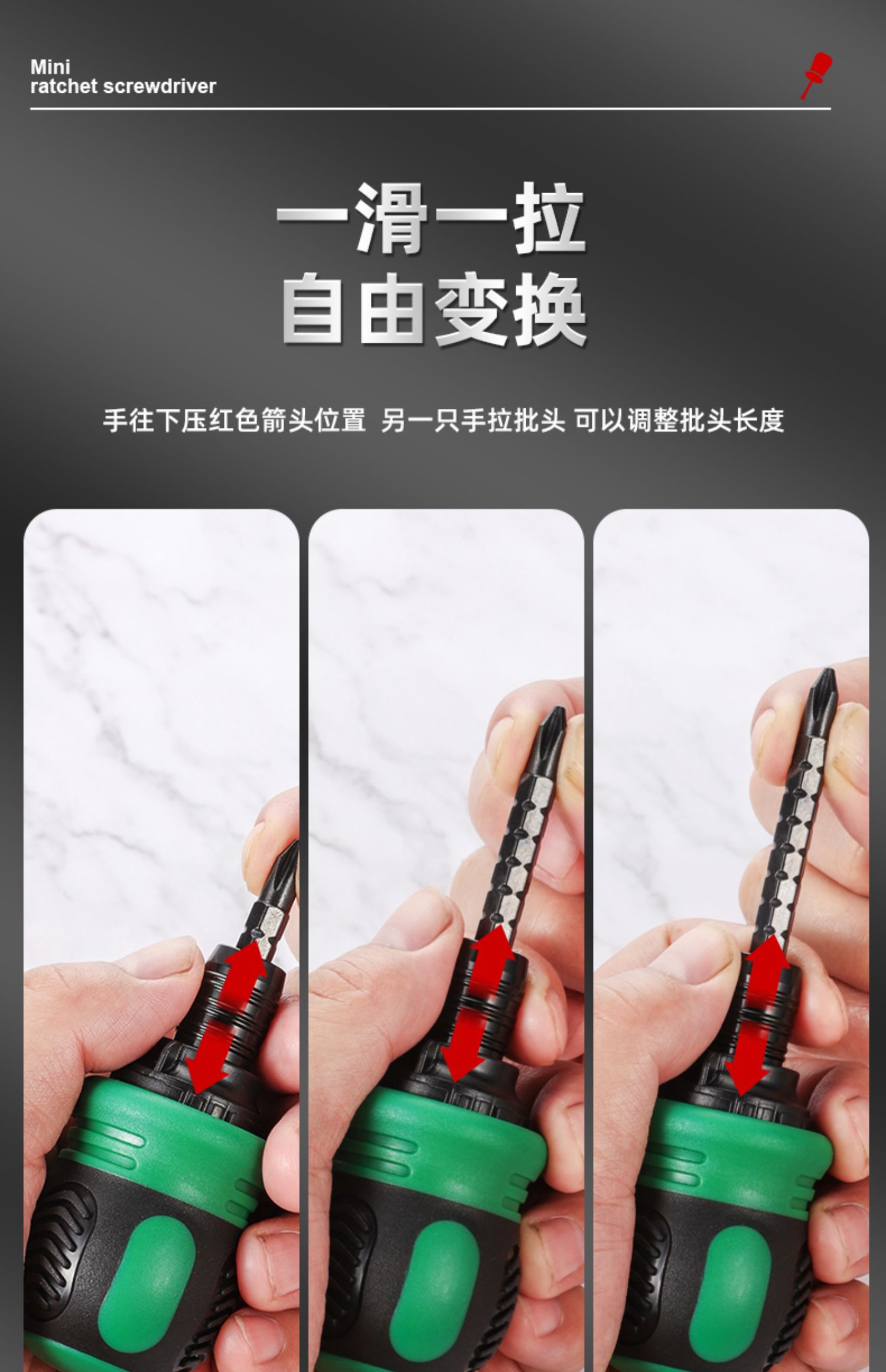 destornillador de trinquete doméstico de doble cabeza retráctil cruz de doble propósito pequeño conjunto de tornillo multifuncional retráctil bidireccional