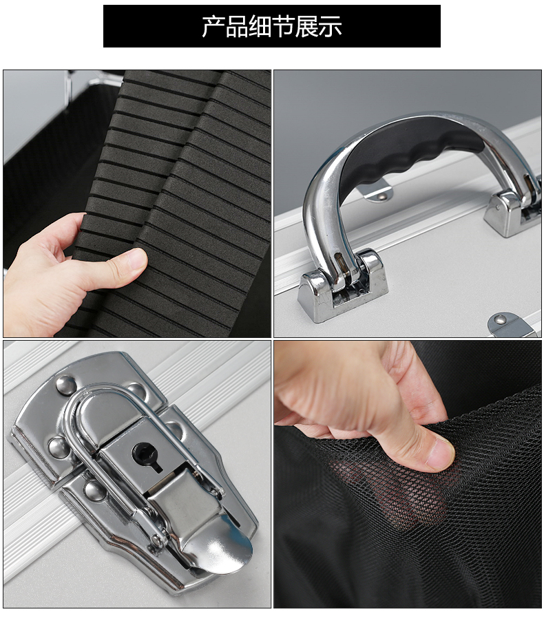 Caja de herramientas de aleación de aluminio grande maleta con cerradura instrumento muestra de archivo de archivo de almacenamiento caja rectangular cabeza de puerta