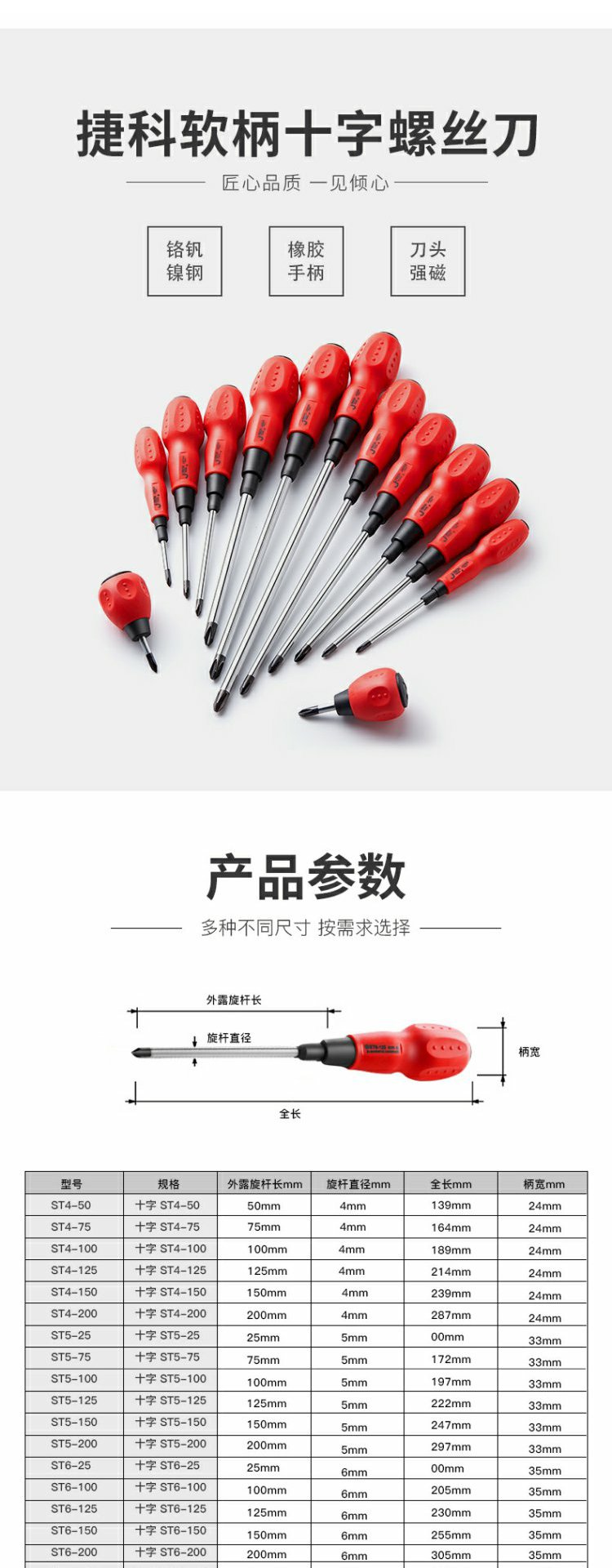 Jetco Tool Cruce Destornillador de vástago blando Cruce con destornillador doméstico magnético Destornillador ST