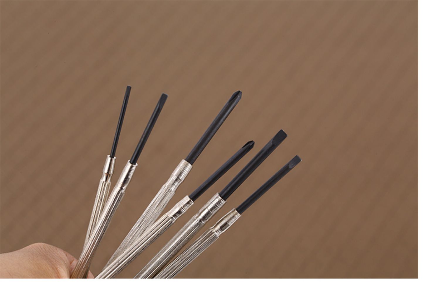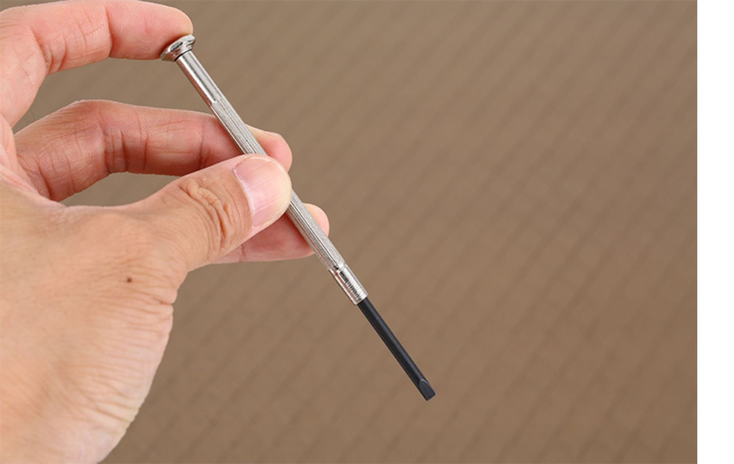 Un pequeño destornillador combinado conjunto de herramientas de hardware multifuncional para el hogar universal para quitar el reloj y reparar gafas con una palabra