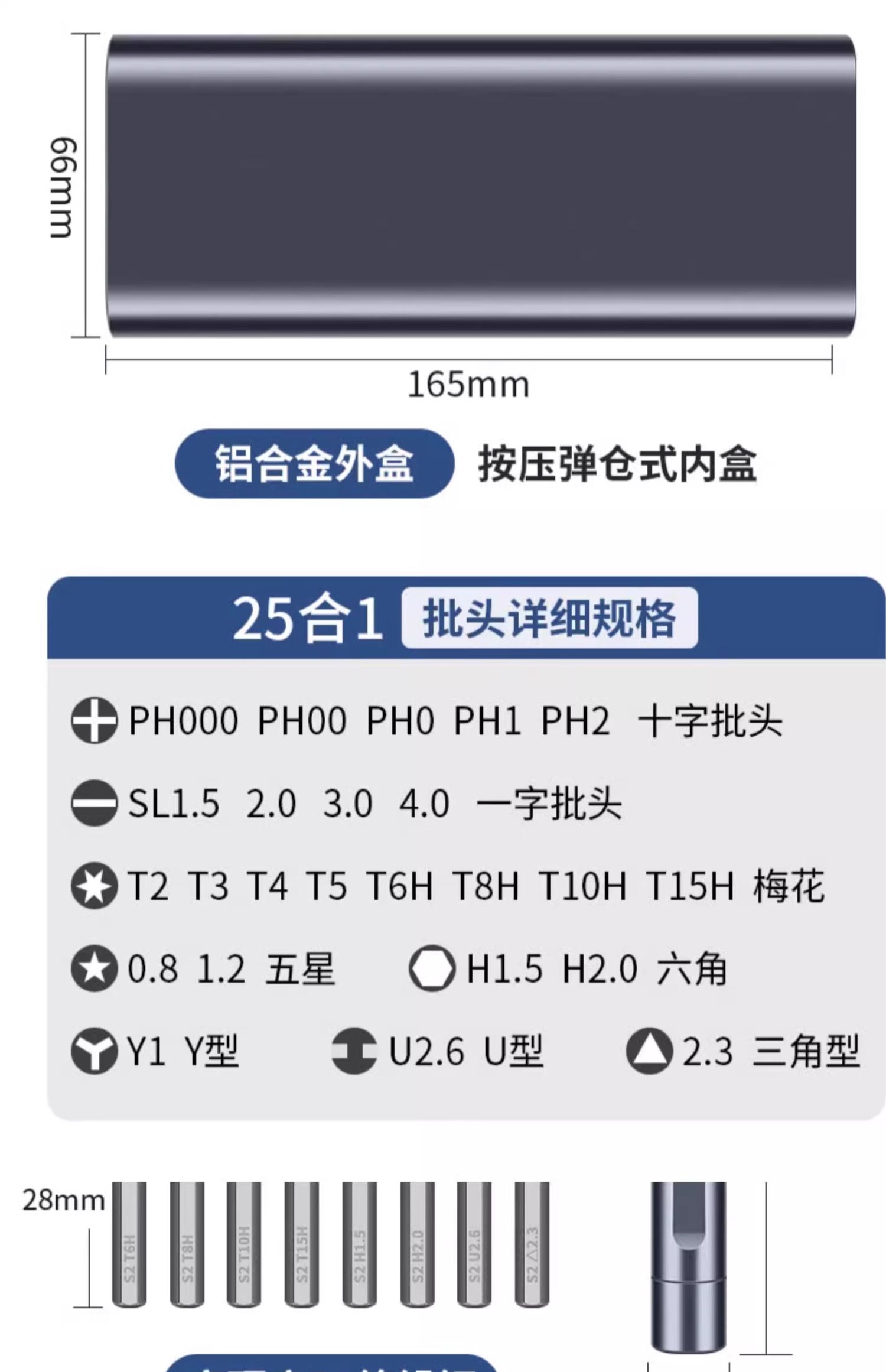 ![[Estilo de gama alta | Gris de caja de aluminio] Juego de destornillador 25 en 1 (acero S2)](https://cbu01.alicdn.com/img/ibank/O1CN01hvBoHW1LAfW5yriAd_!!2211163321259.jpg)