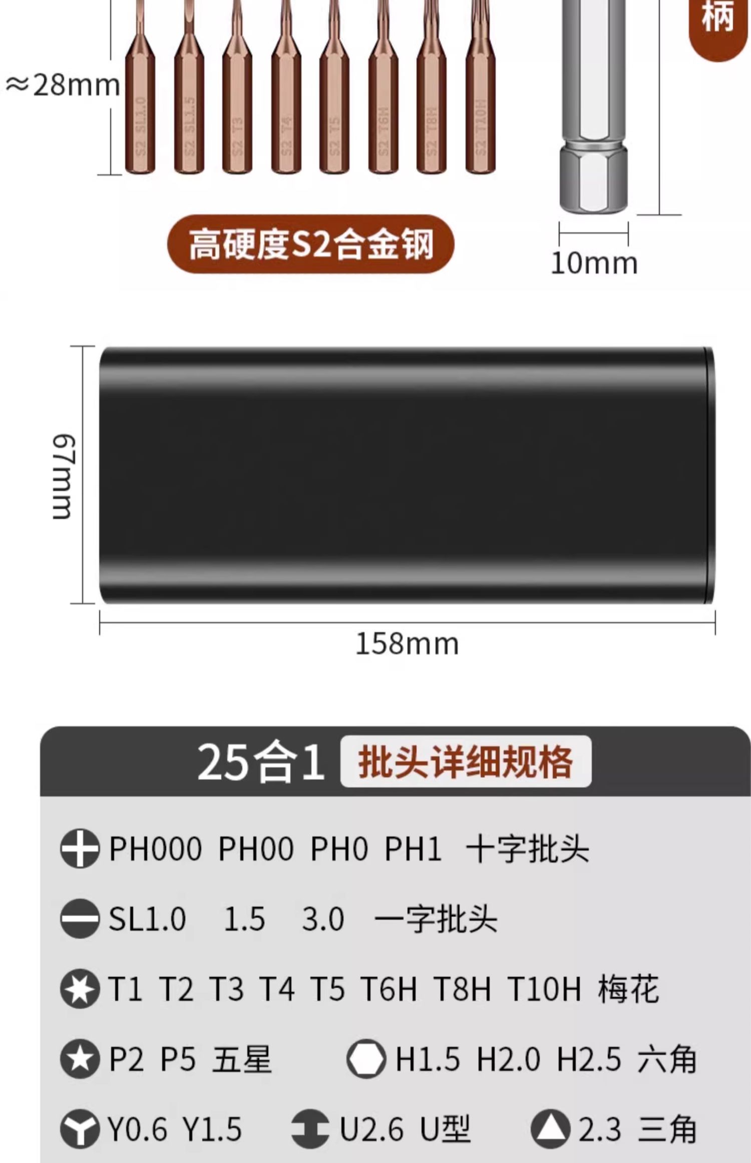 ![[Actualización de acero rojo S2] Juego de destornillador 25 en 1 Juego de desmontaje de 10 piezas](https://cbu01.alicdn.com/img/ibank/O1CN01EAN30i1LAfWD7dCSr_!!2211163321259.jpg)