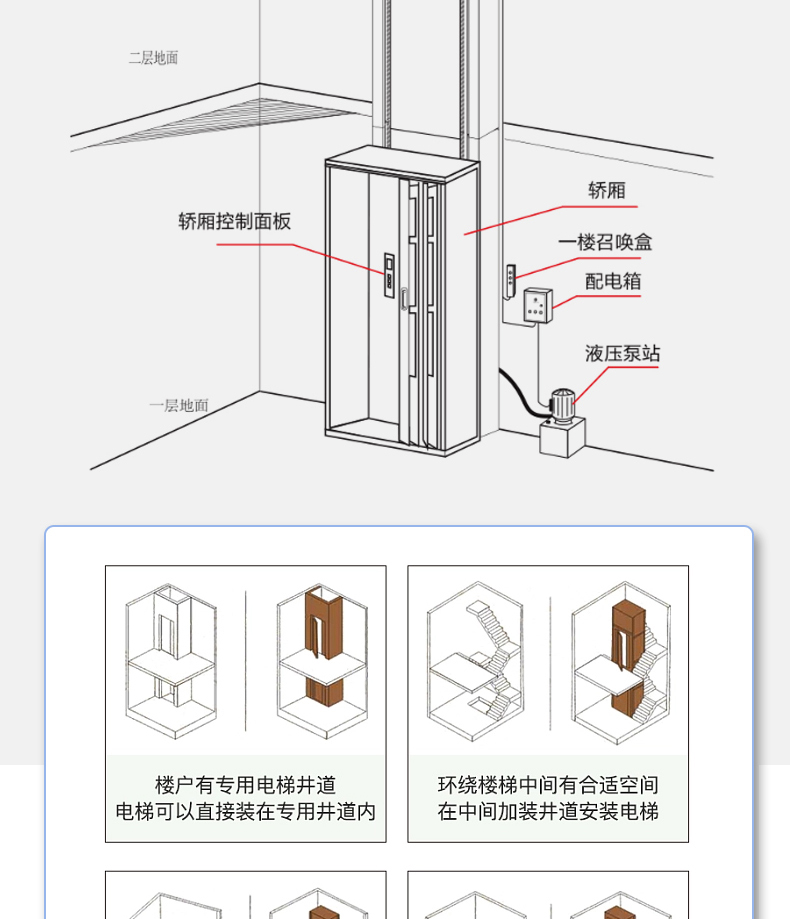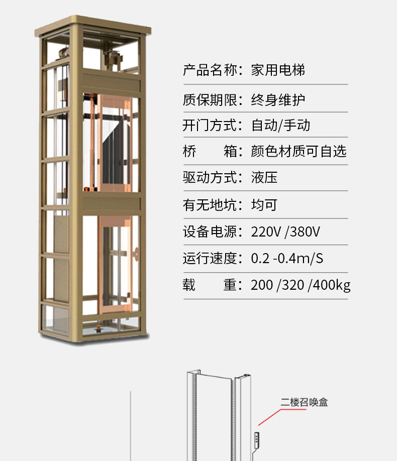 Elevador doméstico inteligente 2 pisos 3 pisos 4 pisos 5 pisos elevador hidráulico villa elevador interior y exterior loft elevador de casa autoconstruida
