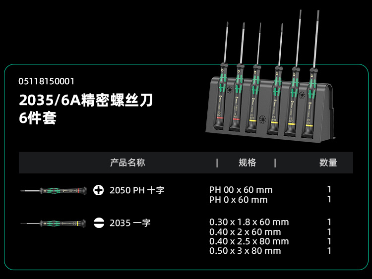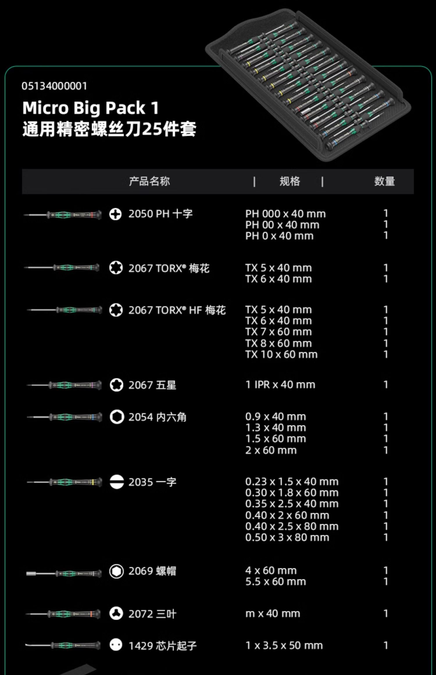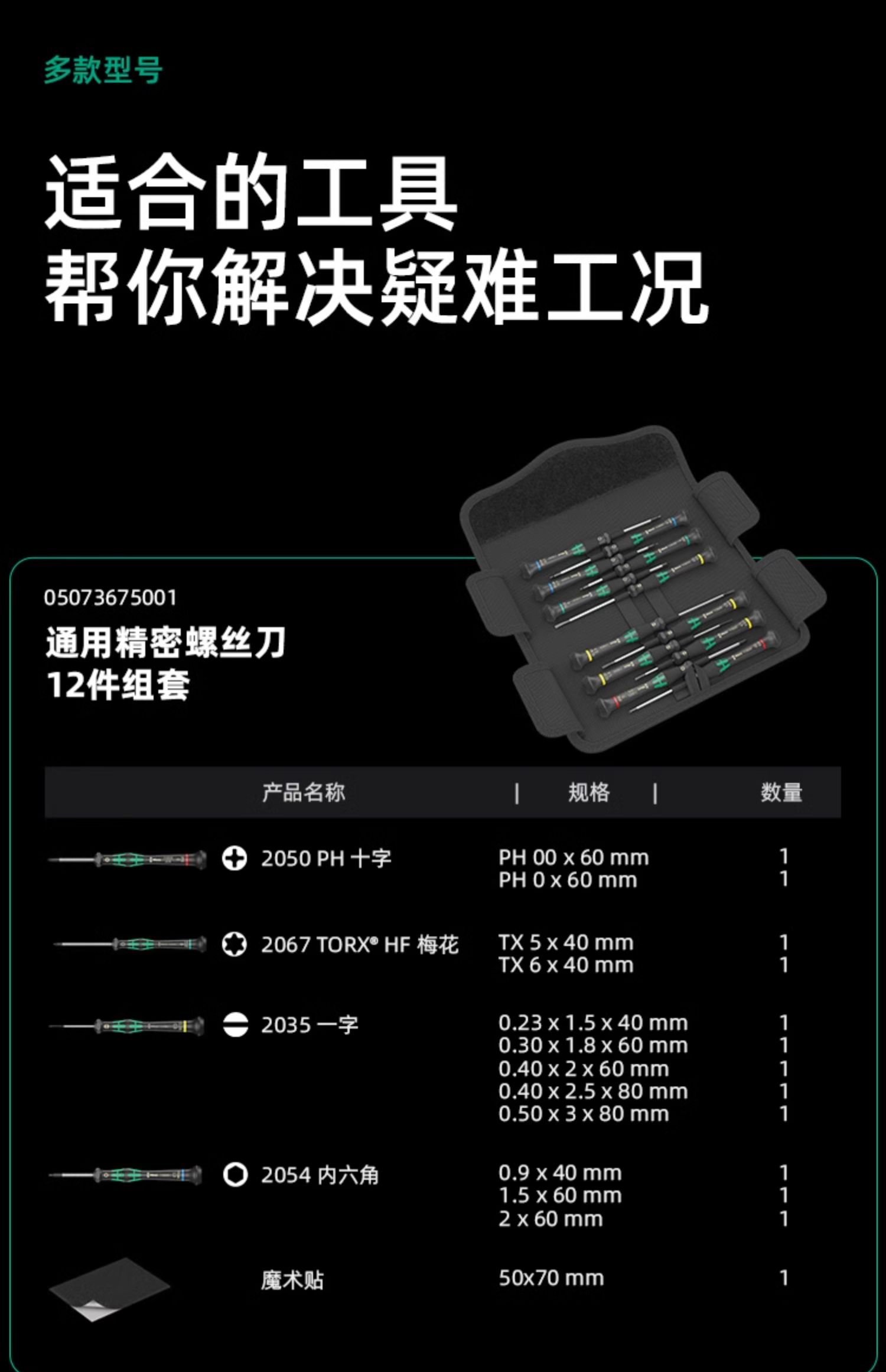 Juego de herramientas de hardware alemán wera Vera para teléfonos móviles, reparación de relojes, juego de destornilladores de precisión de una sola palabra cruzada