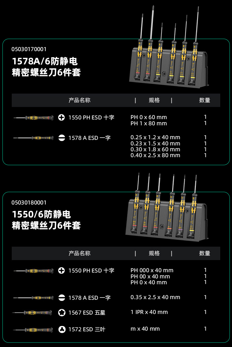 | Colores | 2035 A [Juego de 6 piezas] (118150),2035 B [juego de 6 piezas] (118152),2050 [juego de 6 piezas] (030181),Universal [Juego de 12 piezas] (073675),Tipo profesional [juego de 12 piezas] (073677),Universal [Juego de 25 piezas] (134000),Tipo profesional antiestático [juego de 25 piezas] (134019),Bolso pequeño conveniente actualizado [juego de 29] (134027),1578A antiestático [juego de 6 piezas] (030170),1550 antiestático [juego de 6 piezas] (030180) |
