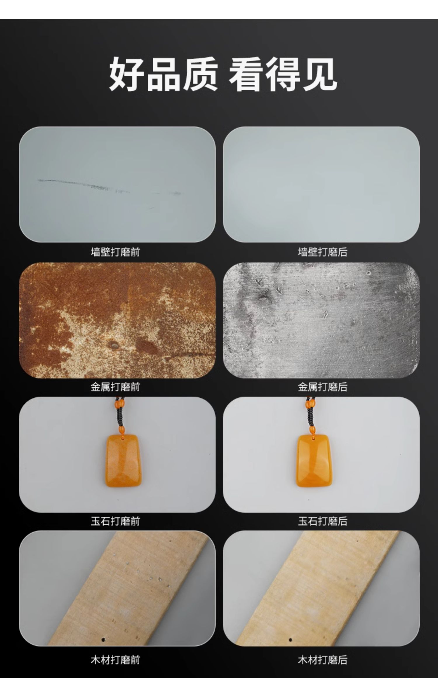 | Especificaciones y modelos | 绿林大品牌 买砂纸 选绿林!,绿林大品牌/天猫认证五金工具品牌榜第一名❤国货品质值得信赖,↓↓以下为常用套装:根据材质❤按需选购即可↓↓,共40片【墙面打磨】一套搞定,共40片【家具打磨】一套搞定,共40片【车漆打磨】一套搞定,共40片【金属打磨】一套搞定,共30片【4寸60+80+150目】※粗磨制品,共30片【4寸60+100+400目】】※粗磨+二次打磨专用,共30片【4寸100+240+400目】※粗磨+二次打磨专用,共30片【4寸60+100+1000目】※粗磨+精细抛光打磨镜面专用,共30片【4寸400+600+800目】二次打磨专用,共30片【4寸1000+1500+2000目】精细抛光打磨镜面专用,↓↓以下为全规格砂纸:根据打磨所需阶段❤按需选购即可↓↓,共60片全家福系列【首次粗磨专用】,共40片全家福系列【第二次打磨专用】,共50片全家福系列【第三次精细抛光专用】,↓↓以下为50片装:手工达人/家装门窗/桌椅涂漆/铁制品除锈/推荐购买↓↓,50片【4寸60目送粘盘+连接杆】※电钻/冲击钻/角磨机均可使用,50片【4寸80目送粘盘+连接杆】※电钻/冲击钻/角磨机均可使用,50片【4寸100目送粘盘+连接杆】※电钻/冲击钻/角磨机均可使用,50片【4寸120目送粘盘+连接杆】※电钻/冲击钻/角磨机均可使用,50片【4寸150目送粘盘+连接杆】※电钻/冲击钻/角磨机均可使用,50片【4寸180目送粘盘+连接杆】※电钻/冲击钻/角磨机均可使用,50片【4寸240目送粘盘+连接杆】※电钻/冲击钻/角磨机均可使用,50片【4寸320目送粘盘+连接杆】※电钻/冲击钻/角磨机均可使用,50片【4寸400目送粘盘+连接杆】※电钻/冲击钻/角磨机均可使用,50片【4寸600目送粘盘+连接杆】※电钻/冲击钻/角磨机均可使用,50片【4寸800目送粘盘+连接杆】※电钻/冲击钻/角磨机均可使用,50片【4寸1000目送粘盘+连接杆】※电钻/冲击钻/角磨机均可使用,50片【4寸1200目送粘盘+连接杆】※电钻/冲击钻/角磨机均可使用,50片【4寸1500目送粘盘+连接杆】※电钻/冲击钻/角磨机均可使用,50片【4寸2000目送粘盘+连接杆】※电钻/冲击钻/角磨机均可使用,↓↓以下为100片装:钣金工厂/汽修厂/工程队/装修公司/木工师傅推荐购买↓↓,100片【4寸60目送粘盘+连接杆】※电钻/冲击钻/角磨机均可使用,100片【4寸80目送粘盘+连接杆】※电钻/冲击钻/角磨机均可使用,100片【4寸100目送粘盘+连接杆】※电钻/冲击钻/角磨机均可使用,100片【4寸120目送粘盘+连接杆】※电钻/冲击钻/角磨机均可使用,100片【4寸150目送粘盘+连接杆】※电钻/冲击钻/角磨机均可使用,100片【4寸180目送粘盘+连接杆】※电钻/冲击钻/角磨机均可使用,100片【4寸240目送粘盘+连接杆】※电钻/冲击钻/角磨机均可使用,100片【4寸320目送粘盘+连接杆】※电钻/冲击钻/角磨机均可使用,100片【4寸400目送粘盘+连接杆】※电钻/冲击钻/角磨机均可使用,100片【4寸600目送粘盘+连接杆】※电钻/冲击钻/角磨机均可使用,100片【4寸800目送粘盘+连接杆】※电钻/冲击钻/角磨机均可使用,100片【4寸1000目送粘盘+连接杆】※电钻/冲击钻/角磨机均可使用,100片【4寸1200目送粘盘+连接杆】※电钻/冲击钻/角磨机均可使用,100片【4寸1500目送粘盘+连接杆】※电钻/冲击钻/角磨机均可使用,100片【4寸2000目送粘盘+连接杆】※电钻/冲击钻/角磨机均可使用,↓↓以下为不同机型转接头❤按需购买即可↓↓,✅2共2个【电钻/冲击钻/角磨机】专用螺杆M10+吸盘各1个,✅2个【电钻/冲击钻专用】连接杆M10,✅2个【角磨机专用】粘砂盘 |