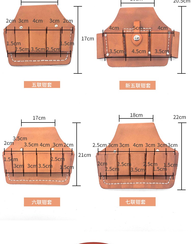 Riñonera de piel de vaca para electricista, herramientas de piel de vaca pura, funda de cuero resistente al desgaste, funda de abrazadera de cuero, multifunción siete y cinco al por mayor