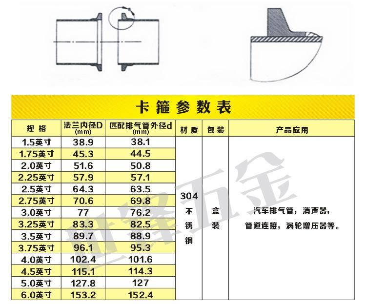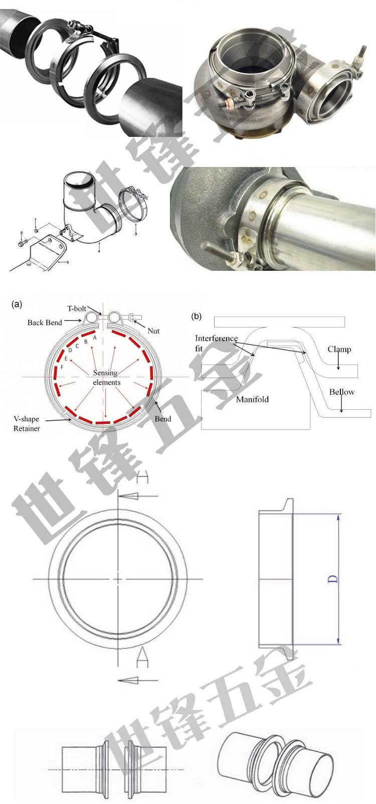 abrazadera de tubo de escape 304 acero inoxidable brida conector hembra V-brazamiento silenciador abrazadera de tubo de garganta en stock