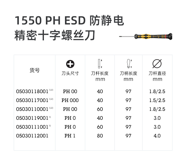 Alemania Wera Vera herramientas de hardware antiestático precisión una palabra destornillador cruzado teléfono móvil cámara de reparación de relojes