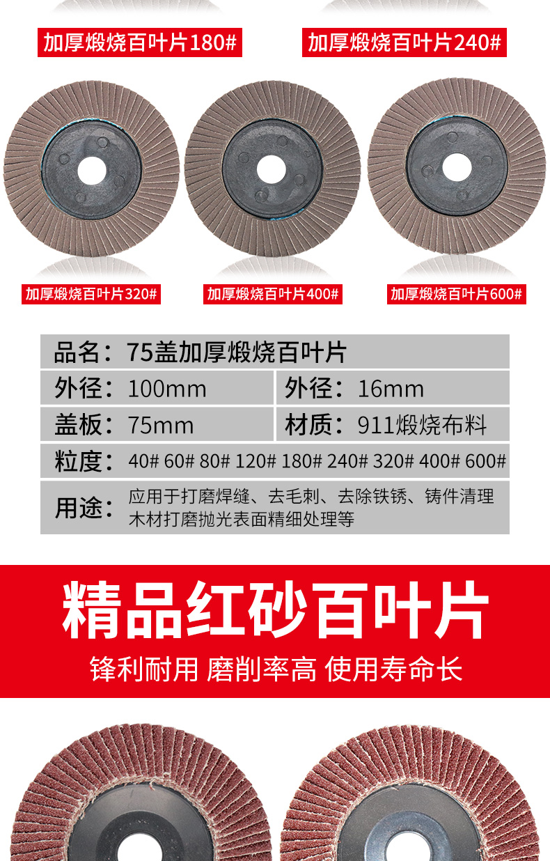 Hoja de pulido de persiana gruesa 100 Hoja de pulido de persiana Rueda de pulido Hoja de molienda de ángulo Rueda de abrasiva Rueda de abrasiva