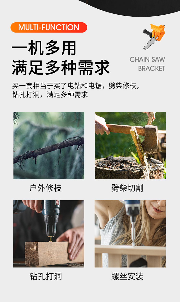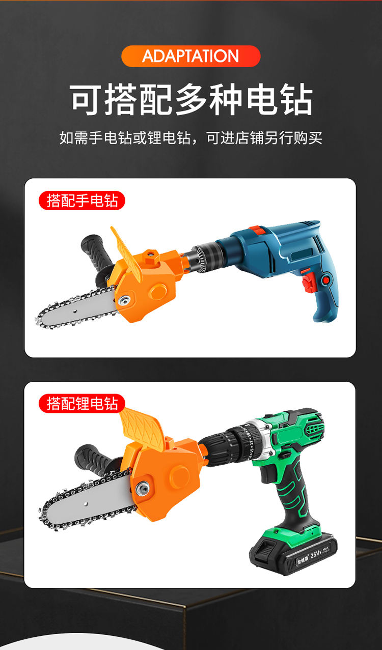 Pequeño al aire libre multifuncional cortador de ramas sierra eléctrica maderería doméstica mini taladro eléctrico conversión de motosierra eléctrica