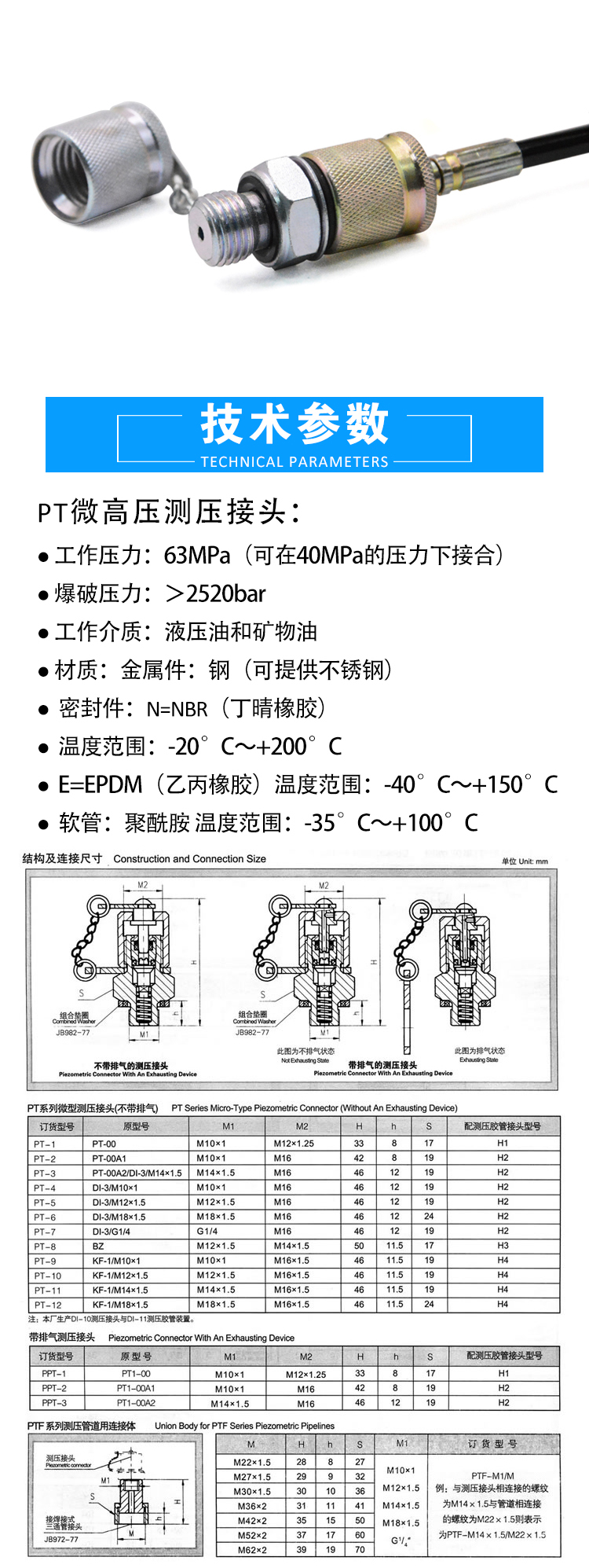 | Especificaciones y modelos | PT-1 M10*1-M12*1.25,PT-2 M10*1-M16*2,PT-3 M14*1.5-M16*2,PT-4 M10*1-M16*2,PT-5 M12*1.5-M16*2,PT-6 M18*1.5-M16*2,PT-7 G1/4-M16*2,PT-8 M12*1.5-M14*1.5,PT-9 M10*1-M16*1.5,PT-10 M12*1.5-M16*1.5,PT-11 M14*1.5-M16*1.5,PT-12 M18*1.5-M16*1.5,ZG1/8-M16*2,G1/8-M16*2,M8*1-M16*2,G3/8-M16*2,7/16-20UNF-M16*2,M10*1.25-M16*2, Sombrero, 9 / 16 - 18unf - M16 * 2, zg1 / 4 - M16 * 2, zg3 / 8 - M16 * 2, G1 / 2 - M16 * 2, M16 * 1,5 - M16 * 2 |