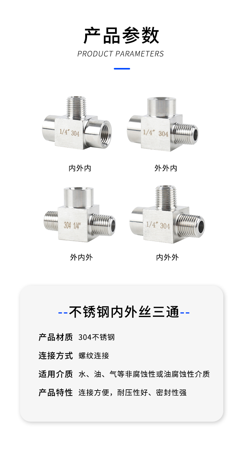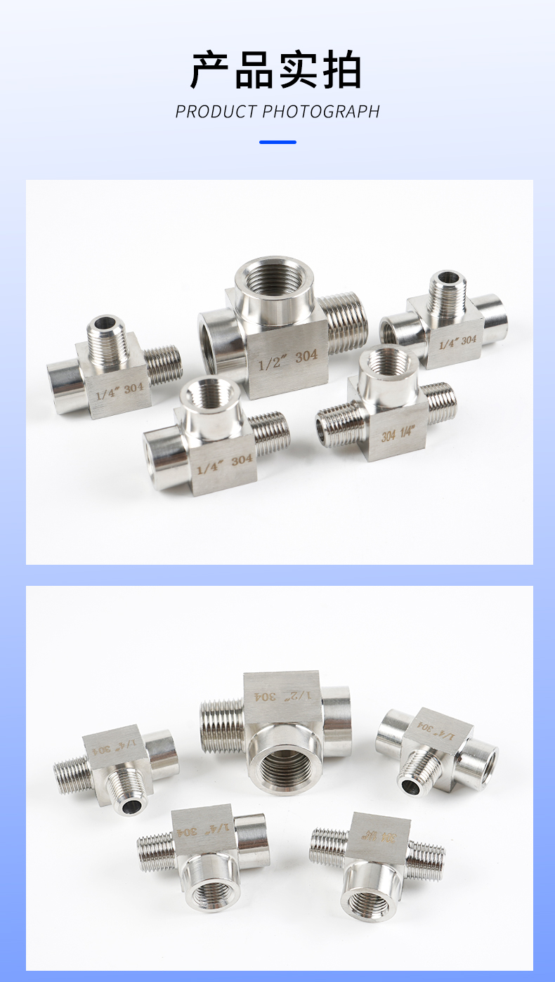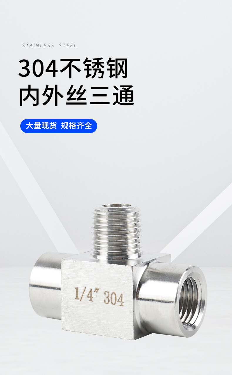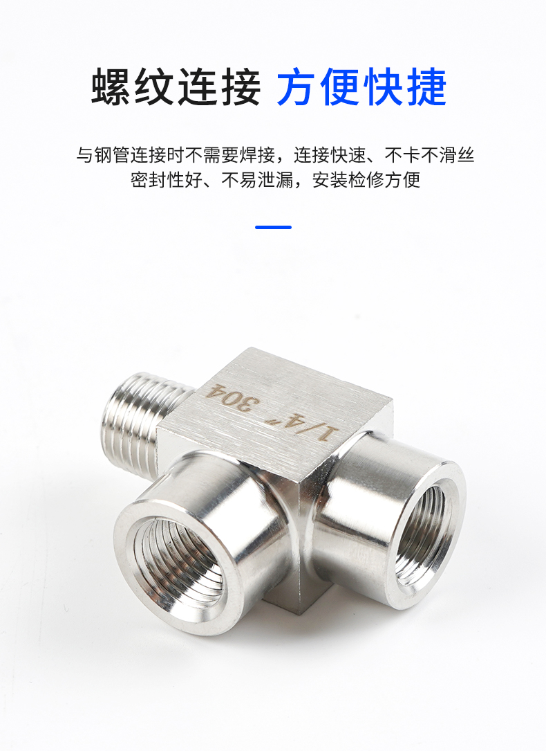 Acero inoxidable 4 puntos de alambre interno y externo tee 304 engrosado manómetro de presión tee conector de tornillo interno y externo de alta presión adaptador M20