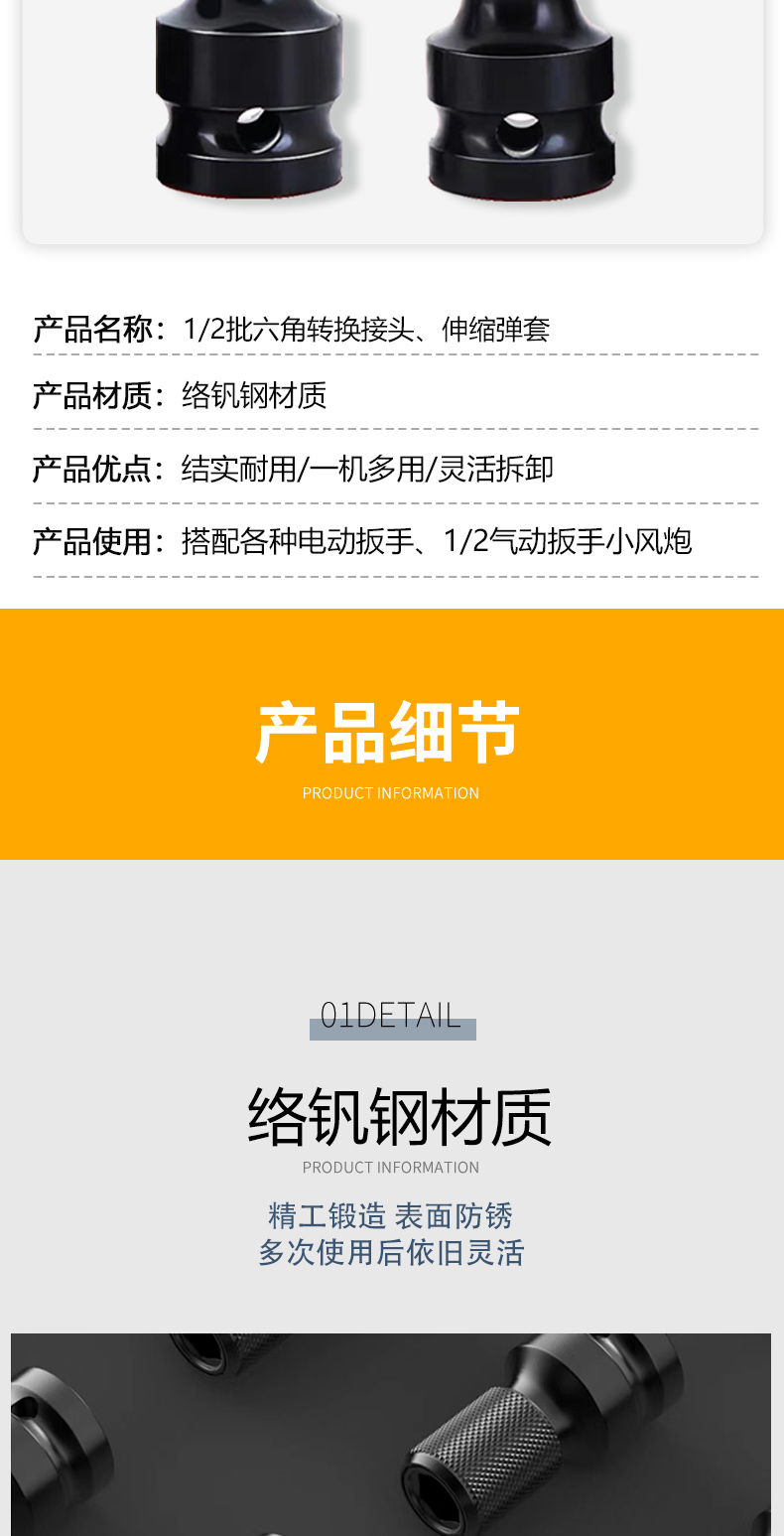 cabeza de conversión de llave eléctrica manguito cabeza de conversión de aprobación adaptador de función dinámica hexagonal interno cañón de aire telescópico cabeza de conversión de manguito