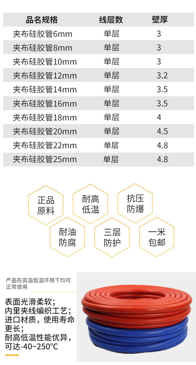 | Especificaciones y modelos | 6 * 12mm por metro [rojo], 8 * 14mm por metro [rojo], 10 * 16MM por metro [rojo], 12 * 18mm por metro [rojo], 14 * 20mm por metro [rojo], 16 * 22mm por metro [rojo], 19 * 25mm por metro [rojo], 22 * 28mm por metro [rojo], 25 * 31mm por metro [rojo], 32 * 42mm por metro [rojo], 6 * 12mm por Metro [azul], 8 * 14mm por metro [azul], 10 * 16MM por metro [azul], 12 * 18mm por metro [azul], 14 * 20mm por metro [azul], 16 * 22 mm por metro [azul], 19 * 25 mm por metro [azul], 22 * 28 mm por metro [azul], 25 * 31 mm por metro [azul], 32 * 42 mm Un metro [azul], todo el rollo 6 * 12 [rojo] 20 metros, todo el rollo 8 * 14 [rojo] 20 metros, todo el rollo 10 * 16 [rojo] 20 metros, todo el rollo 12 * 18 [rojo] 20 metros, todo el rollo 14 * 20 [rojo] 20 metros, todo el rollo 16 * 22 [rojo] 20 metros, todo el rollo 19 * 25 [rojo] 20 metros, todo el rollo 22 * 28 [rojo] 20 metros, todo el rollo 25 * 31 [rojo] 20 metros, todo el rollo 32 * 42 [rojo] 20 metros, todo el rollo 6 * 12 [azul] 20 metros, todo el rollo 8 * 14 [azul] 20 metros, todo el rollo 10 * 16 [azul] 20 metros volumen completo 12 * 18 [azul] 20 metros, volumen completo 14 * 20 [azul] 20 metros, volumen completo 16 * 22 [azul] 20 metros, volumen completo 19 * 25 [azul] 20 metros, volumen completo 22 * 28 [azul] 20 metros, volumen completo 25 * 31 [azul] 20 metros, volumen completo 32 * 42 [azul] 20 metros |