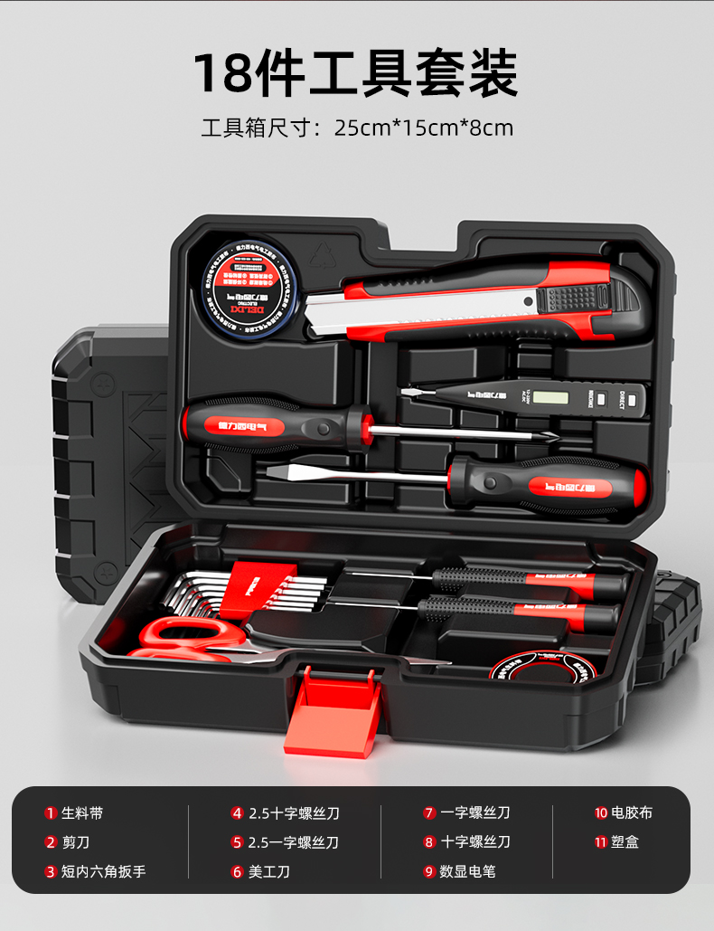 Kit de herramientas domésticas eléctricas de Delissi, caja de herramientas manuales, hardware multicapa, equipo de mantenimiento especial para electricista y carpintero