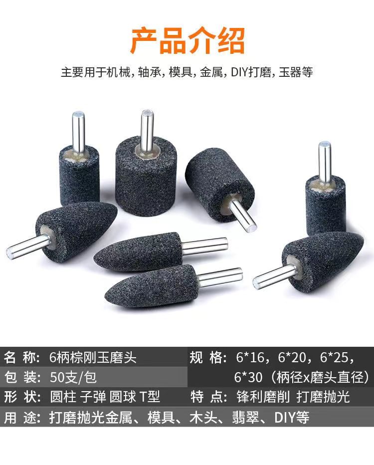 broca de corindón marrón broca de molienda cilíndrica cónica taladro eléctrico broca de molienda eléctrica de metal de 6 mm de mango