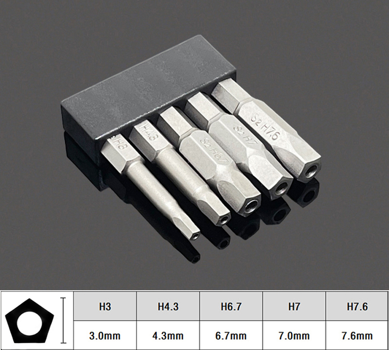 cabeza de lote de un solo vehículo pentagonal con agujero para mantenimiento de bicicletas cabeza de lote de aire magnético de forma especial S2 acero destornillador eléctrico cabeza