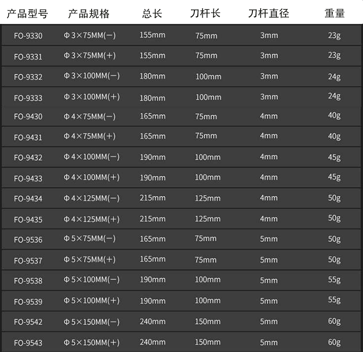 | Especificaciones y modelos | 3 * 75mm una palabra 9330, 3 * 75mm una palabra 9331, 3 * 100mm una palabra 9332, 3 * 100mm una palabra 9333, 4 * 75mm una palabra 9430, 4 * 75mm una palabra 9431, 4 * 100mm una palabra 9432, 4 * 100mm una palabra 9433, 4 * 125mm una palabra 9434, 5 * 75mm una palabra 9536, 5 * 75mm una palabra 9537, 5 * 100mm una palabra 9538,5 * 100mm una palabra 9539,5 * 150mm una palabra 9542,5 * 150mm una palabra 9543,6 * 100mm una palabra 9030,6 * 100mm una palabra 9031,6 * 125mm una palabra 9032,6 * 125mm una palabra 9033,6 * 150mm una palabra 9034,6 * 150mm una palabra 9035,6 * 65mm una palabra de doble uso 9006, 9 conjuntos de destornilladores, 6 * 200MM o más especificaciones (1 pieza) |