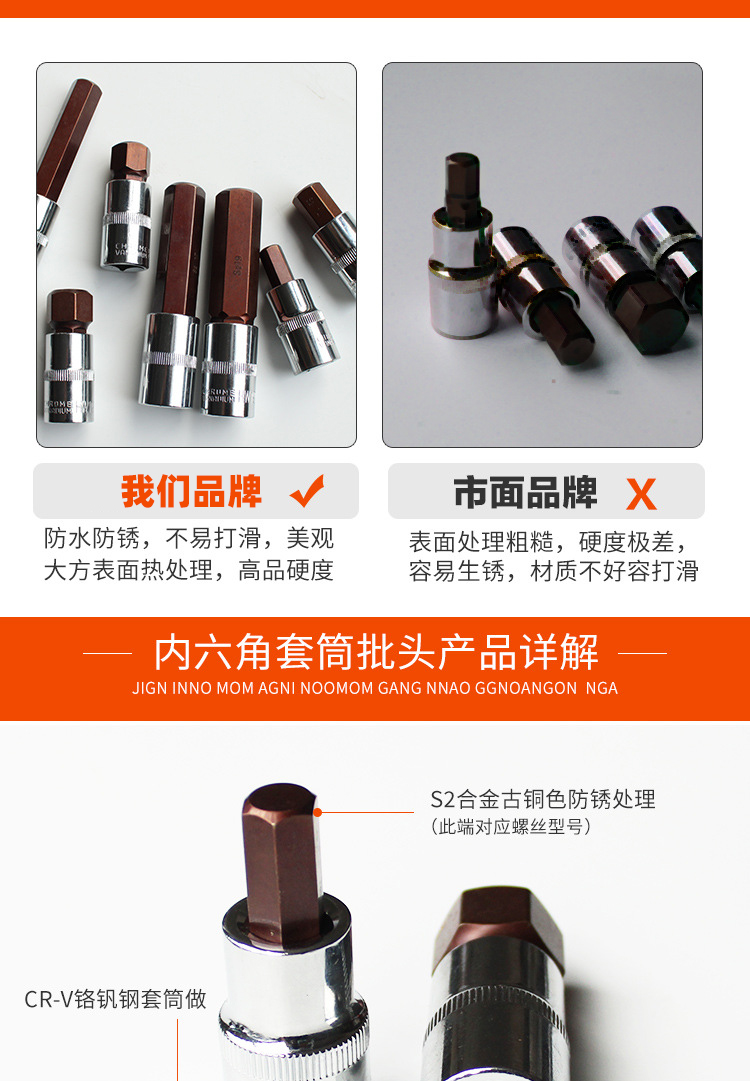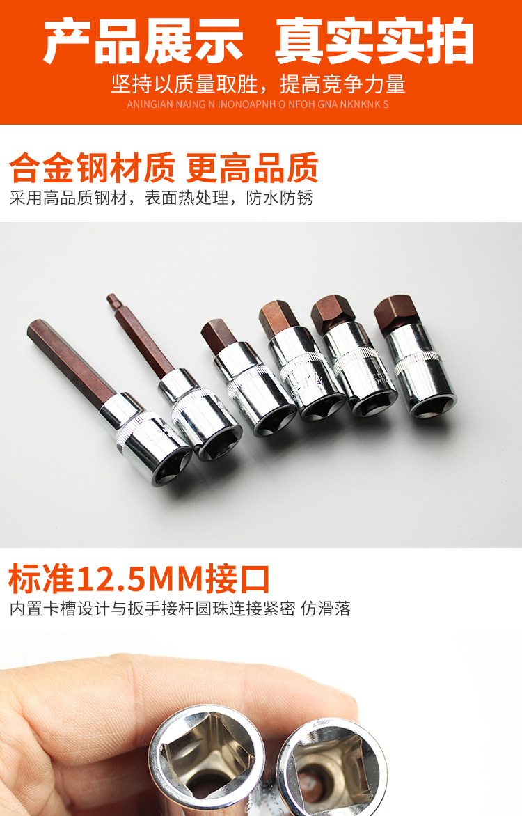 1 / 2 cabeza de manguito hexagonal interno 6 ángulos cruz eléctrica cabeza de lote cañón de aire alargada ciruela herramienta de tornillo manguito llave