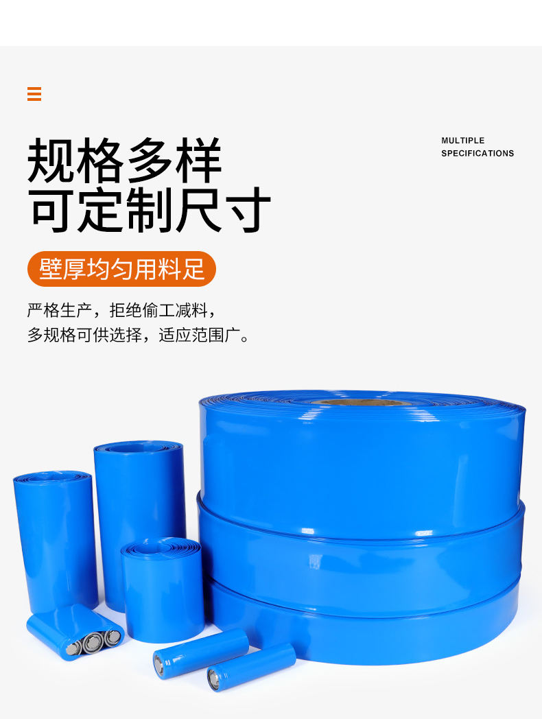 | Modelo | 压扁宽7mm(5米)蓝色,压扁宽9mm(5米)蓝色,压扁宽12mm(5米)蓝色,压扁宽15mm(5米)蓝色,压扁宽17mm(2米)蓝色【可套单节7号电池】,压扁宽20mm(5米)蓝色,压扁宽23mm (2米)蓝色【可套单节5号电池】,压扁宽27mm(5米)蓝色,压扁宽29.5mm(2米)蓝色【可套单节18650电池】,压扁宽31mm(5米)蓝色,压扁宽36mm (2米)蓝色【可套单节21700电池】,压扁宽40mm(5米)蓝色,压扁宽43mm(2米)蓝色【可套单节26650电池】,压扁宽45mm(5米)蓝色,压扁宽50mm(5米)蓝色,压扁宽55mm(5米)蓝色,压扁宽60mm(5米)蓝色,压扁宽66mm(5米)蓝色,压扁宽70mm(5米)蓝色,压扁宽75mm(5米)蓝色,压扁宽80mm(5米)蓝色,压扁宽85mm(5米)蓝色,压扁宽91mm(5米)蓝色,压扁宽95mm(5米)蓝色,压扁宽103mm(2米)蓝色,压扁宽110mm(2米)蓝色,压扁宽115mm(2米)蓝色,压扁宽120mm(2米)蓝色,压扁宽125mm(2米)蓝色,压扁宽130mm(2米)蓝色,压扁宽135mm(2米)蓝色,压扁宽140mm(2米)蓝色,压扁宽145mm(2米)蓝色,压扁宽150mm(2米)蓝色,压扁宽155mm(2米)蓝色,压扁宽160mm(2米)蓝色,压扁宽165mm(2米)蓝色,压扁宽170mm(2米)蓝色,压扁宽180mm(2米)蓝色,压扁宽188mm(2米)蓝色,压扁宽200mm(2米)蓝色,压扁宽210mm(1米)蓝色,压扁宽220mm(1米)蓝色,压扁宽228mm(1米)蓝色,压扁宽235mm(1米)蓝色,压扁宽242mm(1米)蓝色,压扁宽250mm(1米)蓝色,压扁宽258mm(1米)蓝色,压扁宽268mm(1米)蓝色,压扁宽280mm(1米)蓝色,压扁宽285mm(1米)蓝色,压扁宽295mm(1米)蓝色,压扁宽300mm(1米)蓝色,压扁宽308mm(1米)蓝色,压扁宽320mm(1米)蓝色,压扁宽330mm(1米)蓝色,压扁宽350mm(1米)蓝色,压扁宽355mm(1米)蓝色,压扁宽370mm(1米)蓝色,压扁宽380mm(1米)蓝色,压扁宽400mm(1米)蓝色,压扁宽420mm(1米)蓝色,压扁宽450mm(1米)蓝色,压扁宽475mm(1米)蓝色,压扁宽500mm(1米)蓝色,压扁宽555mm(1米)蓝色,压扁宽600mm(1米)蓝色,压扁宽625mm(1米)蓝色 |