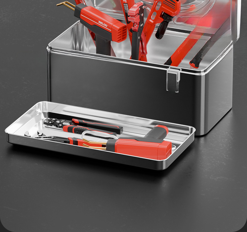 Caixa de herramientas de acero inoxidable de grado industrial de almacenamiento para automóviles multifuncional de hardware casero maleta