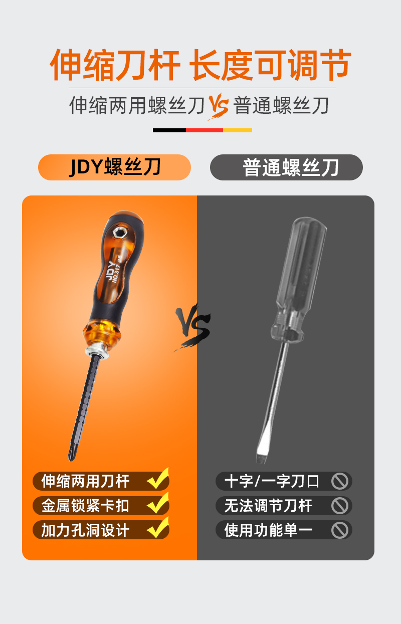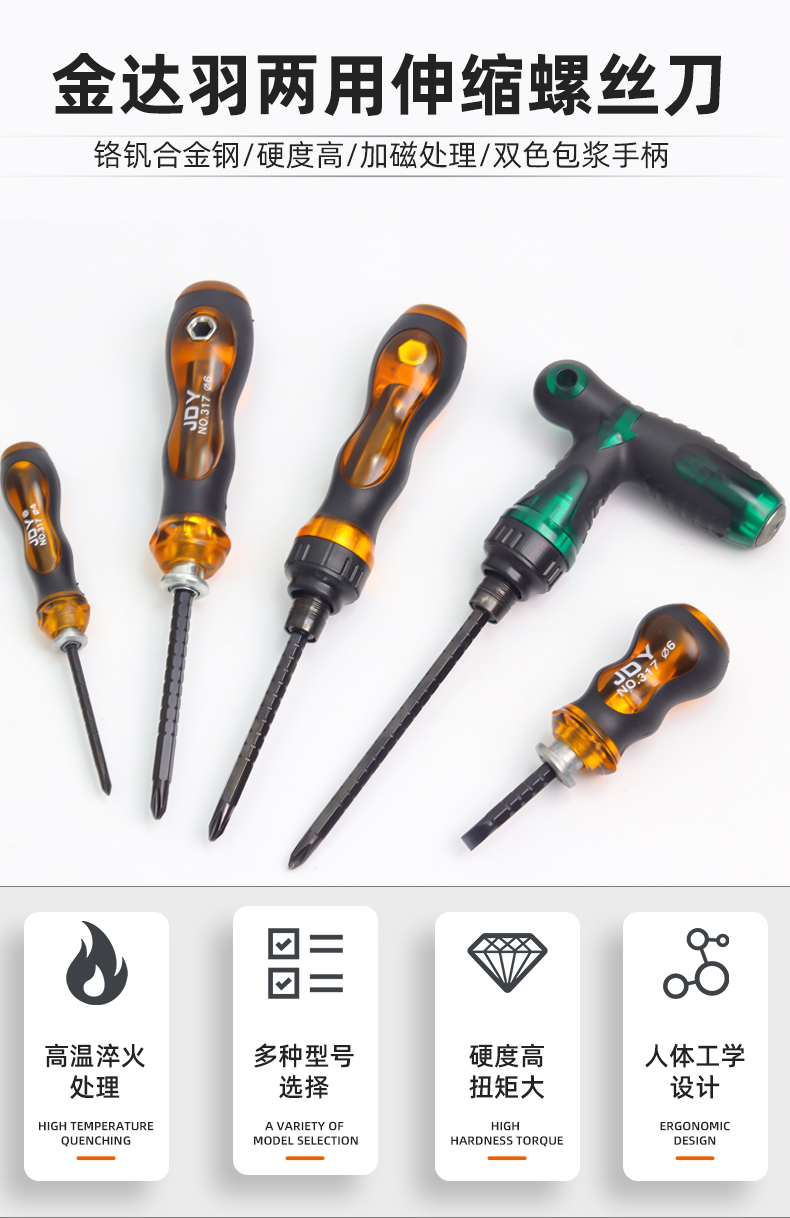 Un destornillador telescópico de doble propósito con una cruz de trinquete ultra dura alemana multifuncional de grado industrial conjunto de destornillador magnético fuerte