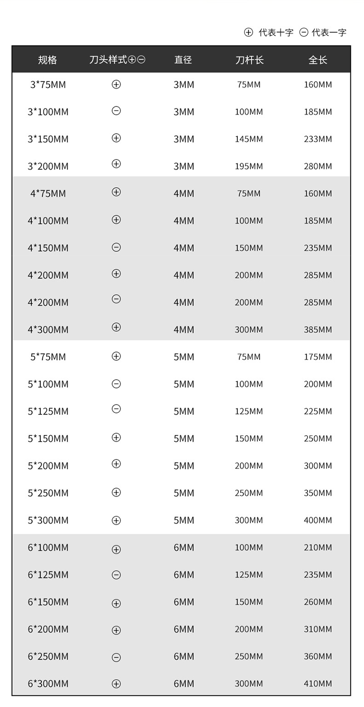 | Modelo de especificación | Cruz 3mm * 75mm para tornillos de 3mm de diámetro,Una palabra 3mm * 75mm para tornillos de 3mm de diámetro,Cruz 3mm * 100mm para tornillos de 3mm de diámetro,Una palabra 3mm * 100mm para tornillos de 3mm de diámetro,Cruz 3mm * 150mm de diámetro adecuado 3mm tornillo,Una palabra 3mm * 150mm para tornillos de 3mm de diámetro,Cruz 4mm * 100mm de diámetro adecuado 4mm tornillo,Una palabra 4mm * 100mm para tornillos de diámetro 4mm,Cruz 4mm * 200mm de diámetro adecuado 4mm tornillo,Una palabra 4mm * 200mm de diámetro adecuado 4mm tornillo,Cruz 5mm * 75mm para tornillos de 5mm de diámetro,Cruz 5mm * 100mm para tornillos de 5mm de diámetro,Una palabra 5mm * 100mm para tornillos de 5mm de diámetro,Cruz 5mm * 150mm de diámetro adecuado 5mm tornillo,Una palabra 5mm * 150mm para tornillos de 5mm de diámetro,Cruz 6mm * 100mm para tornillos de diámetro 6mm,Cruz 6mm * 100mm adecuado para tornillos de diámetro 6mm,Una palabra 6mm * 100mm para tornillos de diámetro 6mm,Una palabra 6mm * 150mm para tornillos de diámetro 6mm,Cruz 6mm * 150mm de diámetro adecuado 6mm tornillo,Una palabra 6mm * 200mm para tornillos de diámetro 6mm |