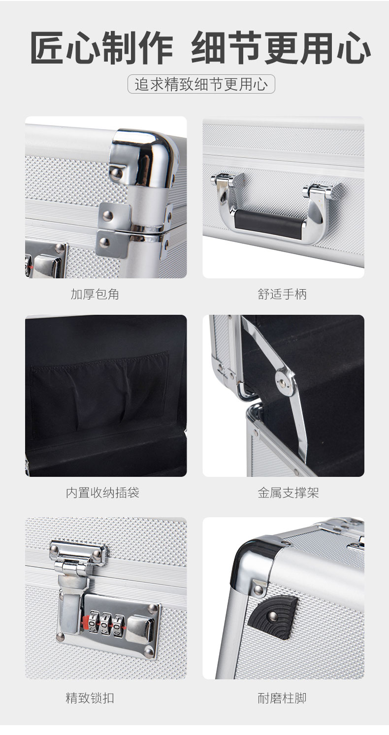 Caja de herramientas de hardware portátil Caja de almacenamiento de aluminio Caja de tarjeta de sonido Caja de archivo Caja de contraseña de aleación de aluminio Caja de instrumentos multifunción