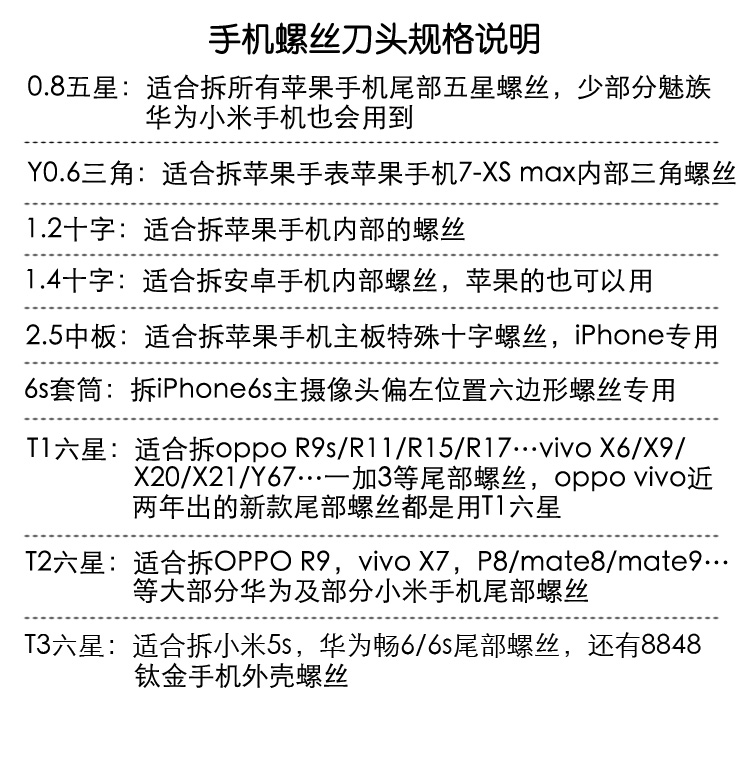 | Color | El mango de cobre (con rodamiento) no contiene cabeza de cuchillo * 1, el mango de cobre (con rodamiento) no contiene cabeza de cuchillo * 2, la cabeza de lote de tres batallones (t3) 1 sin mango, la cabeza de lote de tres batallones (una palabra 1.4) 1 sin mango, la cabeza de lote de tres batallones (una palabra 1.2) 1 sin mango, la cabeza de lote de tres batallones (una palabra 1.0) 1 sin mango, la cabeza de lote de tres batallones (una palabra 1.0) 1 sin mango, la cabeza de lote de tres batallones (una Cruz 2.0) 1 sin mango, la cabeza de lote de tres batallones (una Cruz 1.8) 1 sin mango y la cabeza de batallón 3.(cruz 1.6) 1 sin mango, 3 batallones de cabeza de lote (cruz 1.4) 1 sin mango, 3 batallones de cabeza de lote (cruz 1.2) 1 sin mango, 3 batallones de cabeza de lote (y0.6) 1 No hay mango, no hay mango en la cabeza del lote de tres batallones (palabra 2.0), no hay mango en la cabeza del lote de tres batallones (palabra 1.8), no hay mango en la cabeza del lote de tres batallones (palabra 1.8), no hay mango en la cabeza del lote de tres batallones (columna cruzada 2.5), no hay mango en la cabeza del lote de tres batallones (palabra 1.6), no hay mango en la cabeza del lote de tres batallones (palabra 1.6). |