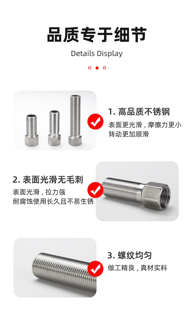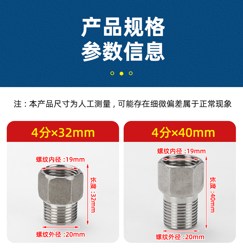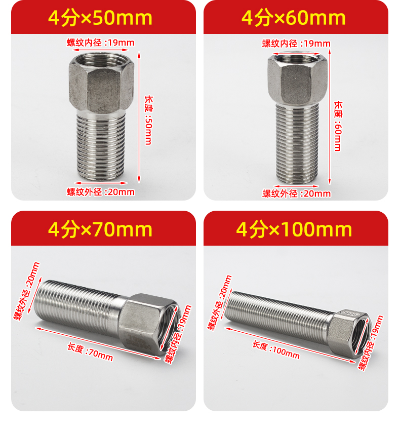 Acero inoxidable 304 conector de alambre interno y externo 4 puntos hexagonal directamente alargado dientes de tornillo grueso extensión de tubería de agua para accesorios de alambre