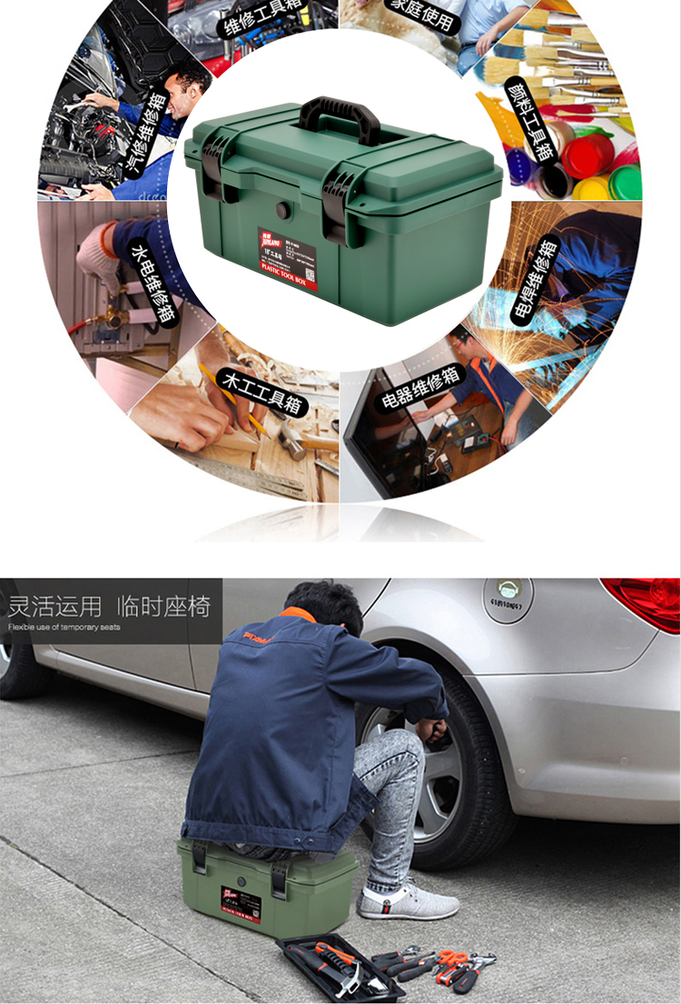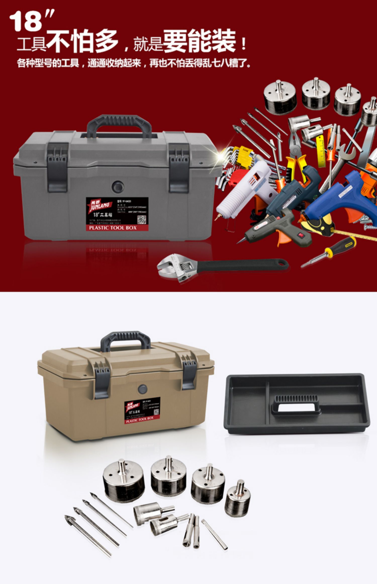 Caja de herramientas de hardware de plástico portátil de tamaño grande y medio, herramienta de mantenimiento multifuncional, caja de almacenamiento de automóviles domésticos