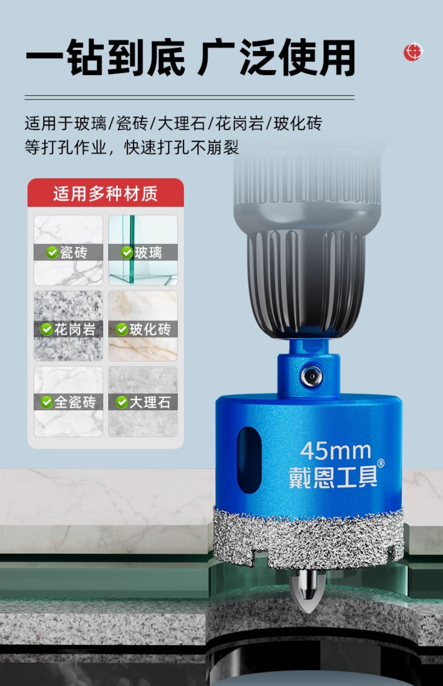 perforador de vidrio para perforar azulejos de posicionamiento soldadura soldadura en seco golpeador especial de mármol de ladrillo magnético completo placa de roca