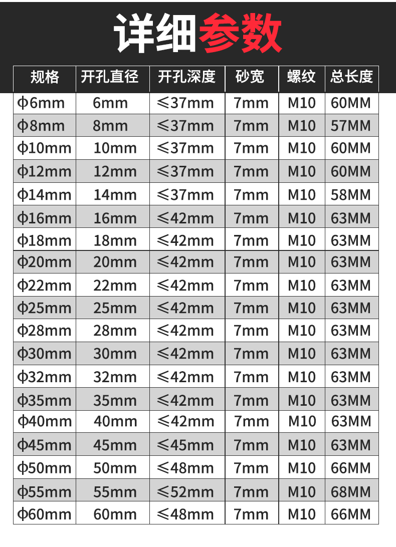 | Modelo | 6mm,8mm,10mm,12mm,14mm,16mm,18mm,20mm,22mm,25mm,28mm,30mm,32mm,35mm,40mm,45mm,50mm,55mm,60mm |
