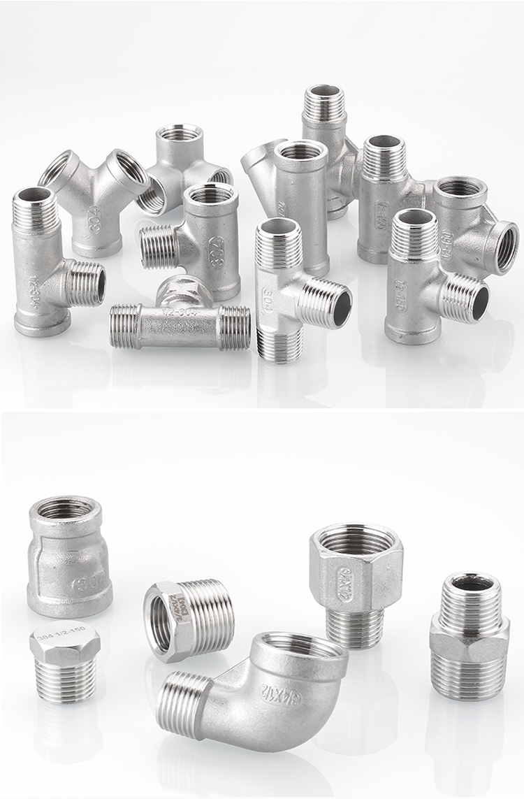 Acoplamiento de tubería de acero inoxidable 304 4 grifos tee interna y externa de alambre a alambre de diámetro variable 4 minutos girar 6 minutos accesorios de agua del grifo