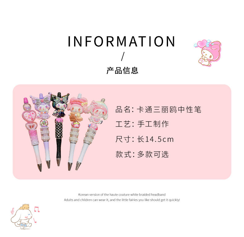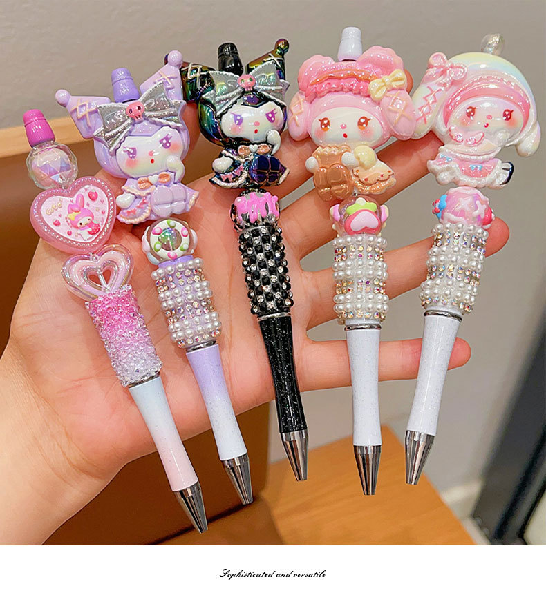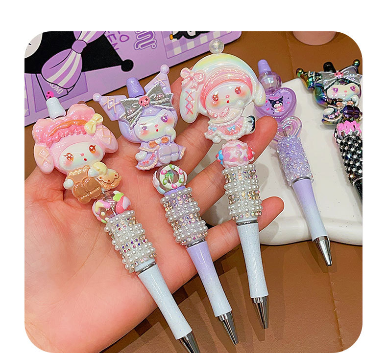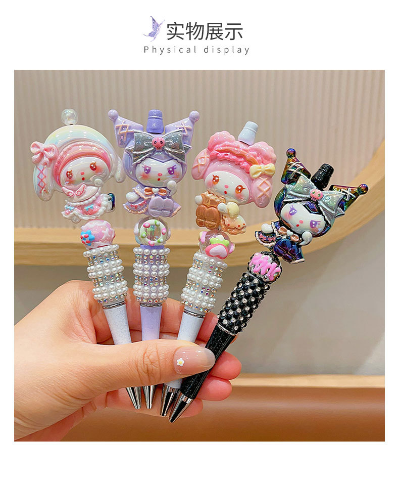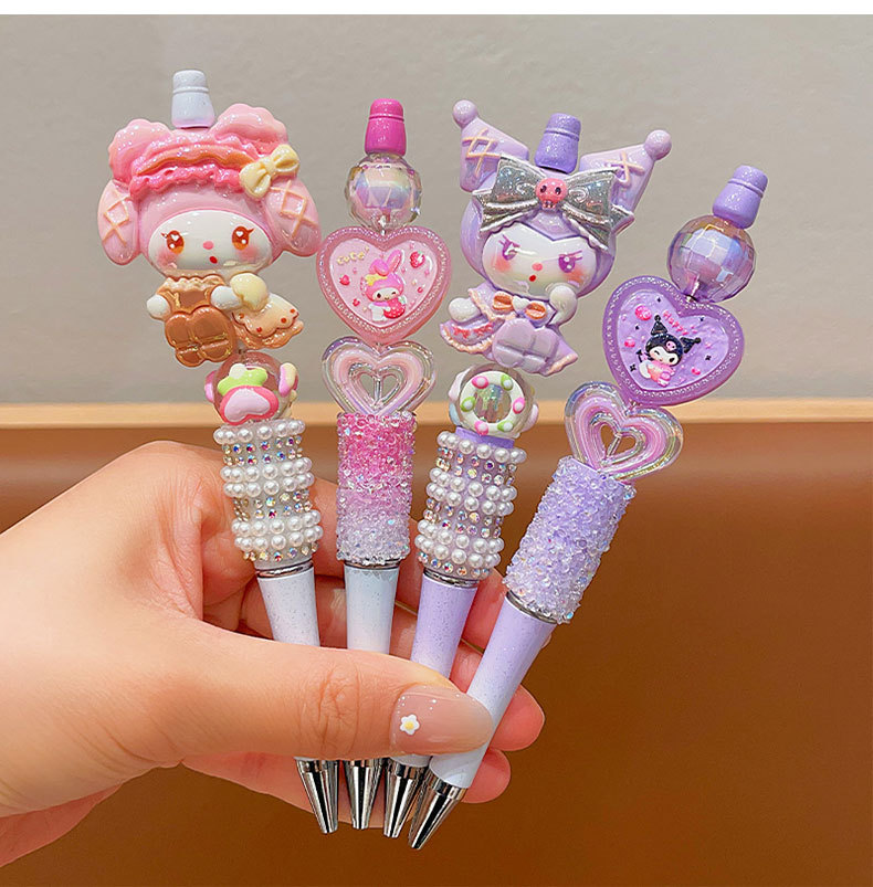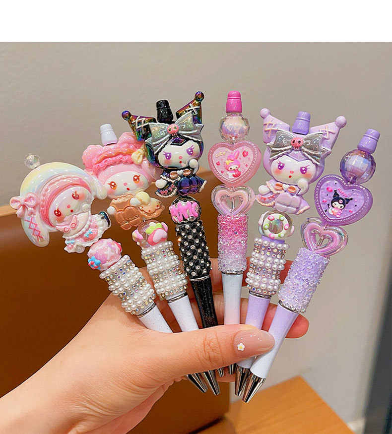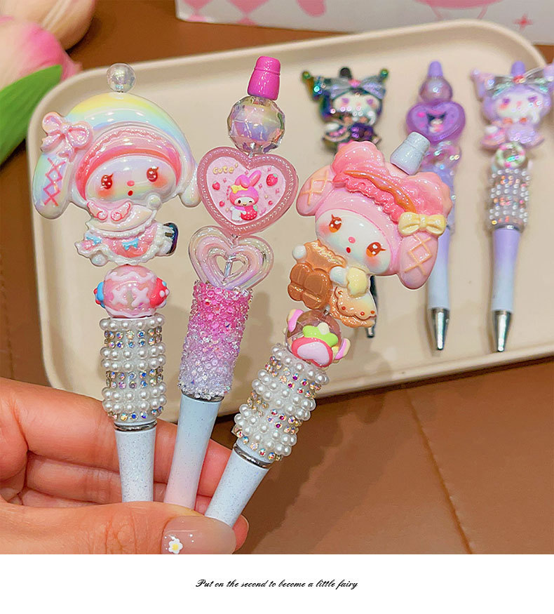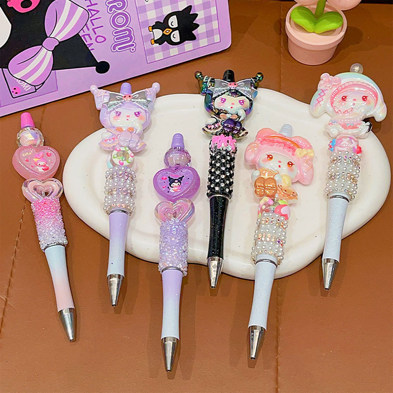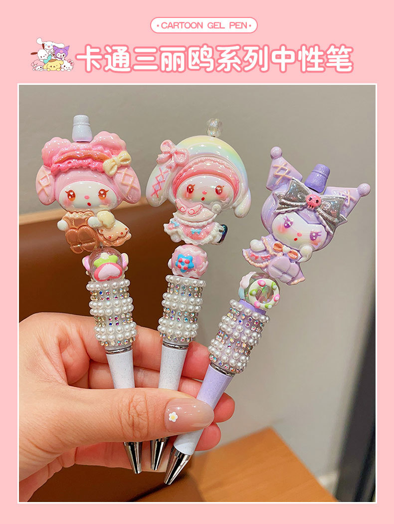 Bolígrafo de góner Sanrio, útiles escolares de dibujos animados para niños, linda niña, linda y brillante, bolígrafo con cuentas de diamantes de imitación