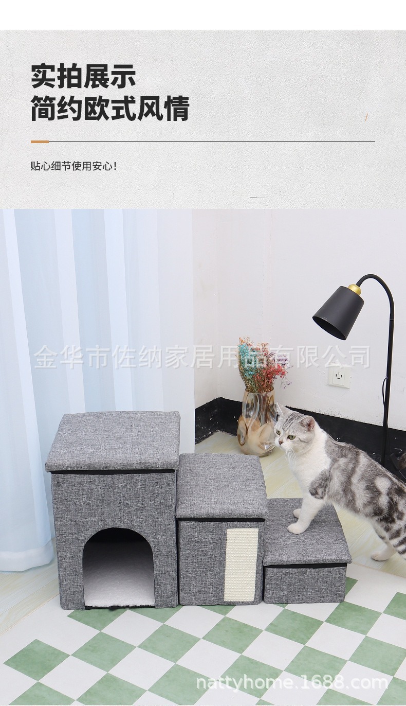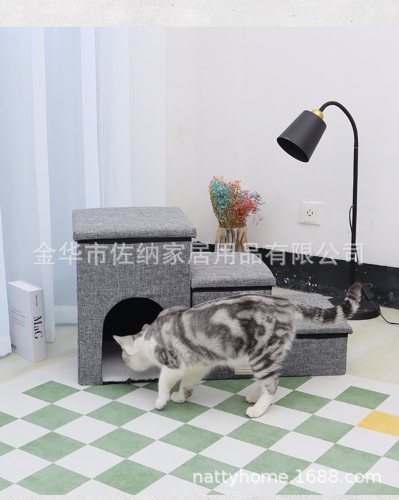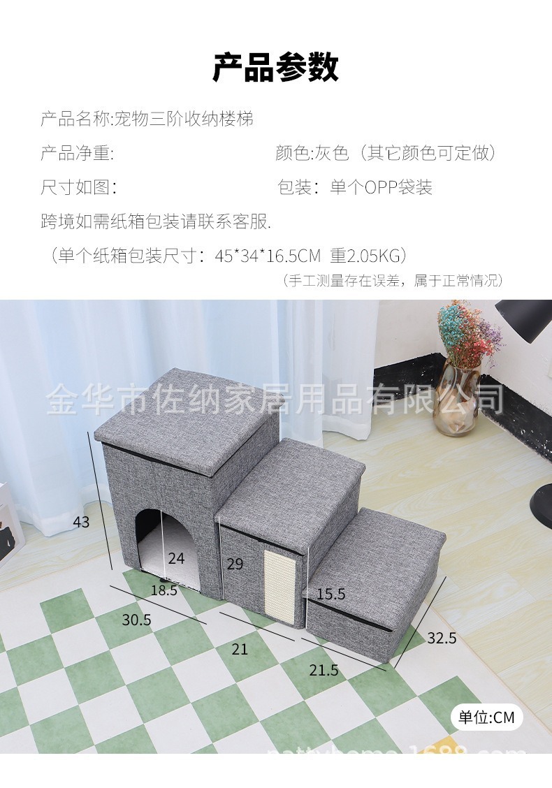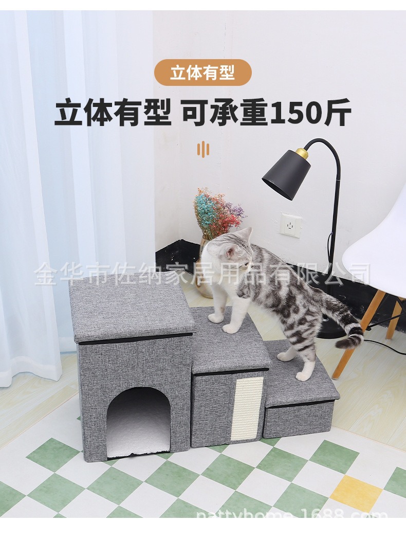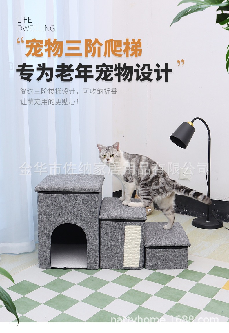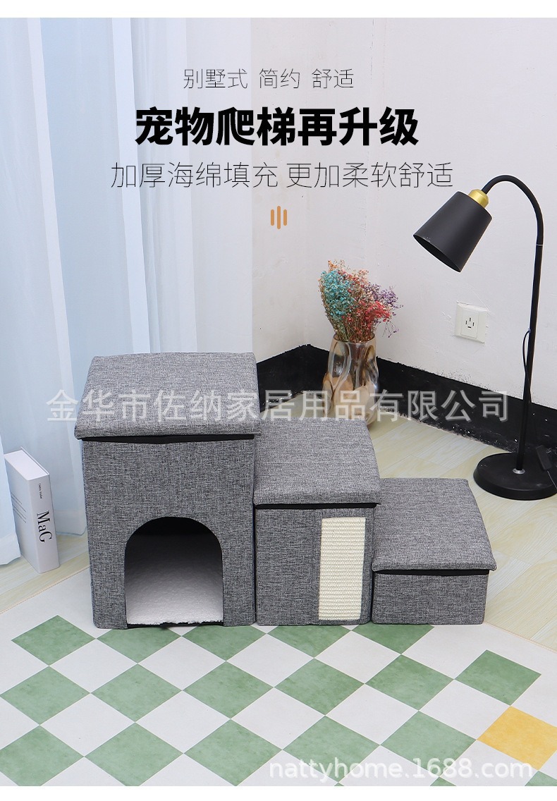 Escalera de almacenamiento de mascotas de tres escaleras plegables perros, gatos, sofá cama antideslizante, escalones para jugar con gatos