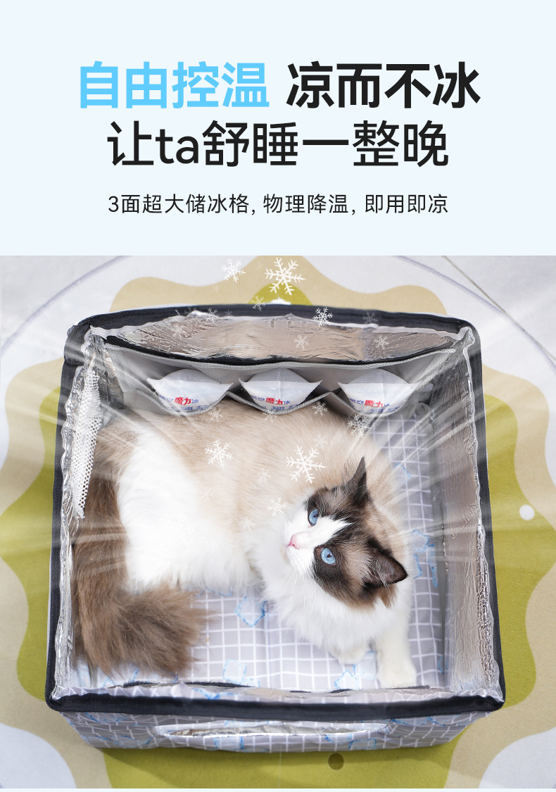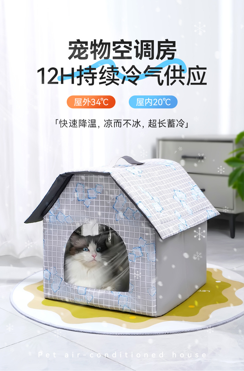 Casa para gatos con aire acondicionado de cubitos de hielo gris (9 bolsas de hielo gratis)