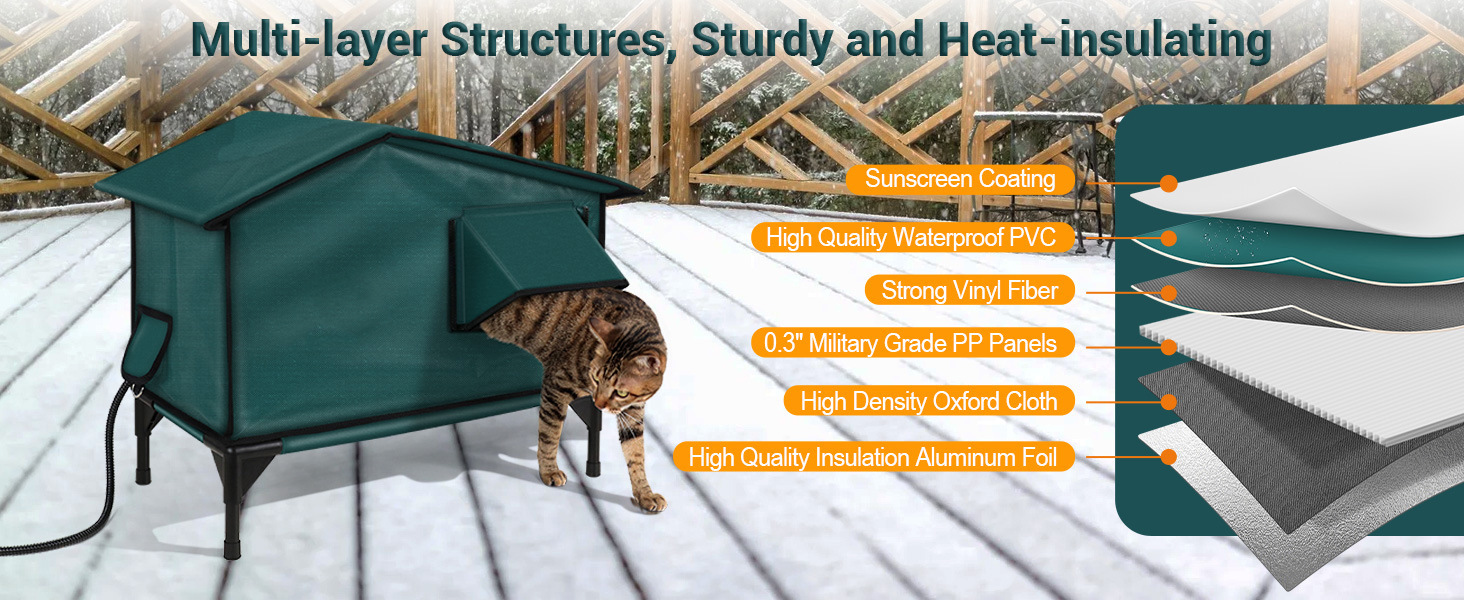 Venta caliente transfronteriza para gatos al aire libre desmontable para aumentar la casa de gatos a prueba de agua con almohadilla térmica Las ventas directas de fábrica se pueden personalizar