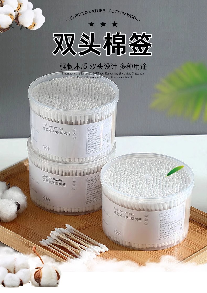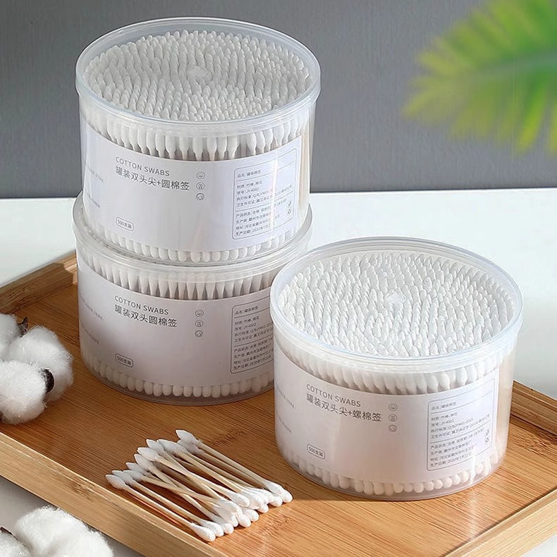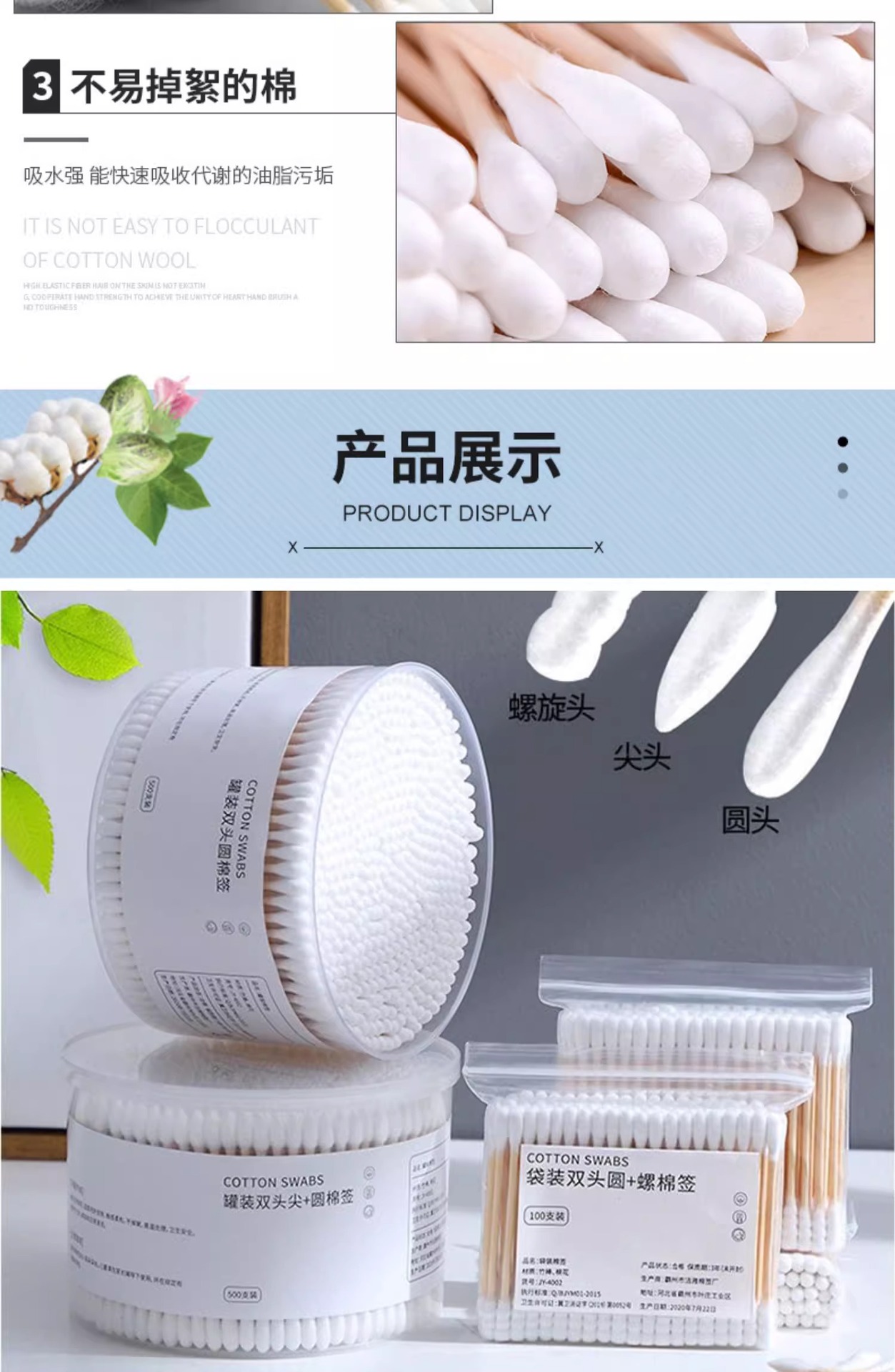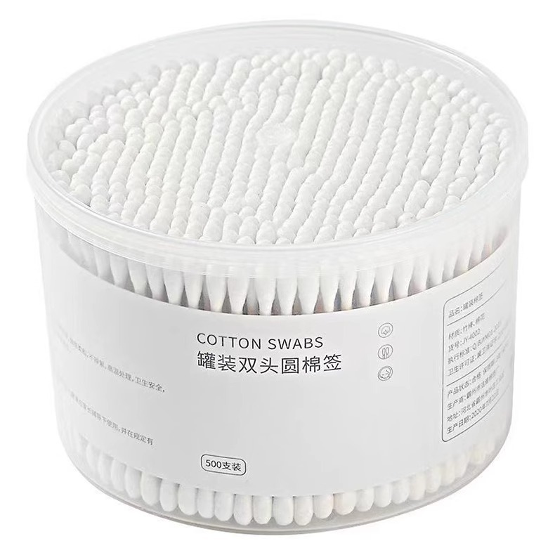 500 hisopos de algodón enlatados, palos de bambú de doble cabeza desechables, maquillaje y limpieza, hisopos de algodón, punta redonda puntiaguda, venta al por mayor directa de fábrica