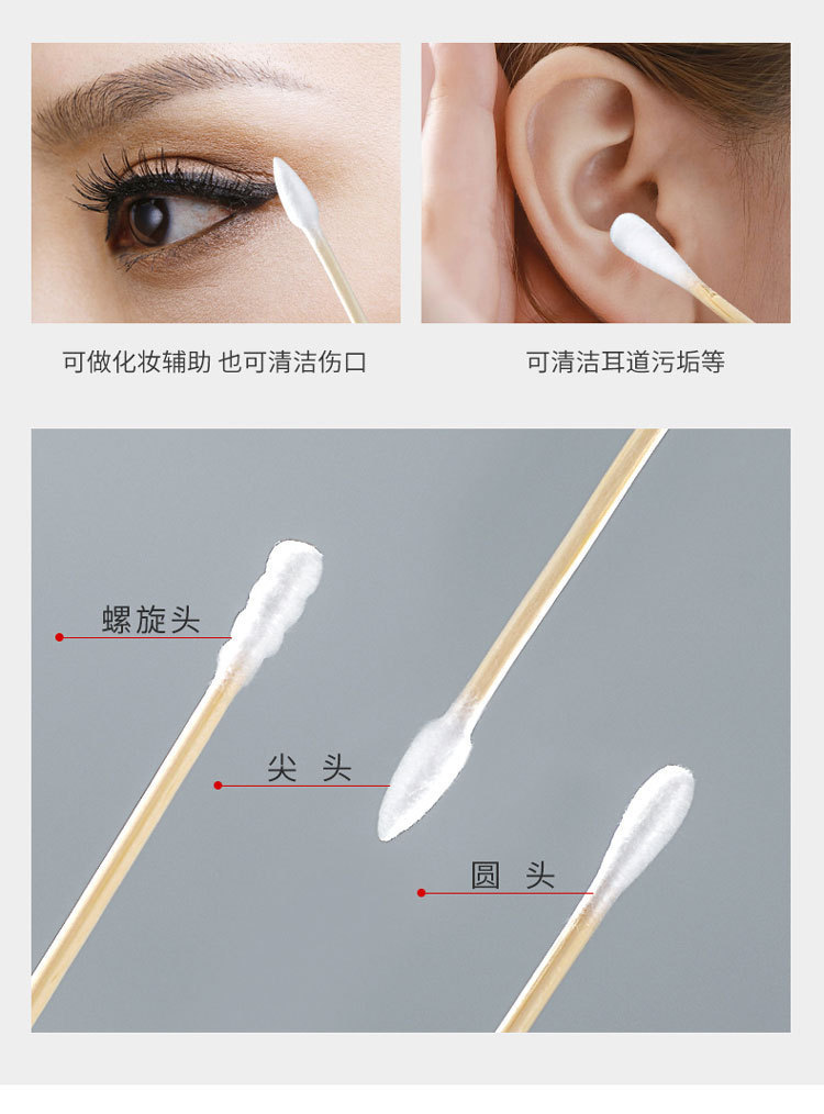 Bhisopos de algodón de doble cabeza en caja, hisopos de algodón desechables, hisopos de algodón para las orejas, hisopos de algodón para bebés, desmaquilladores, hisopos de algodón de limpieza, hisopos de algodón al por mayor