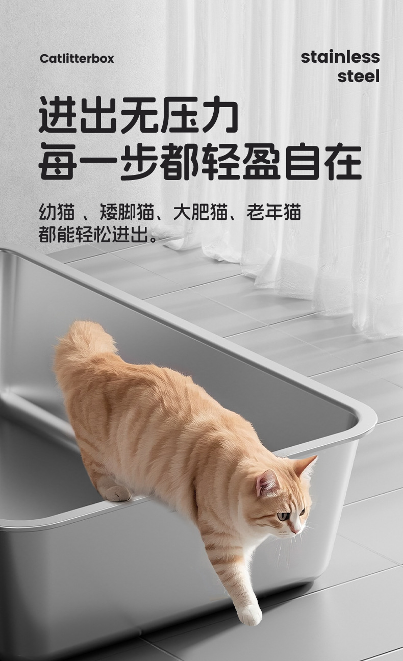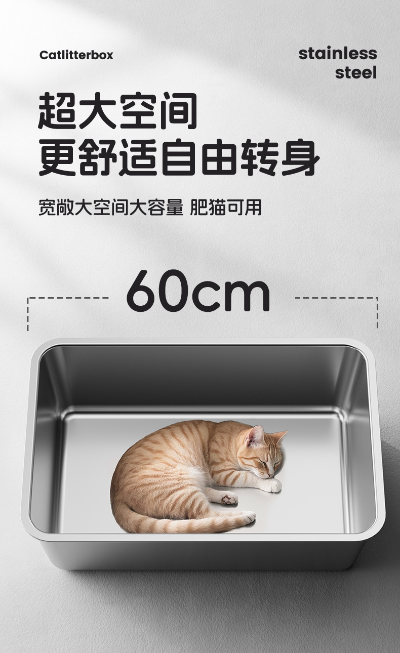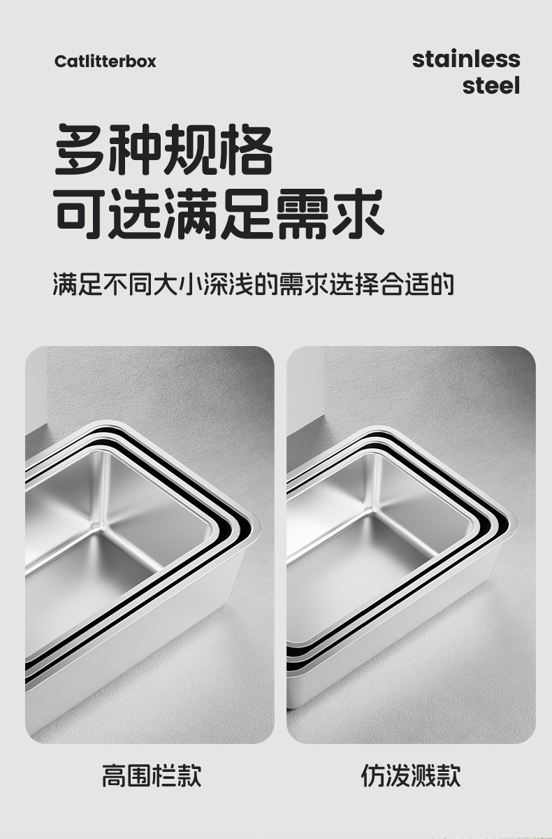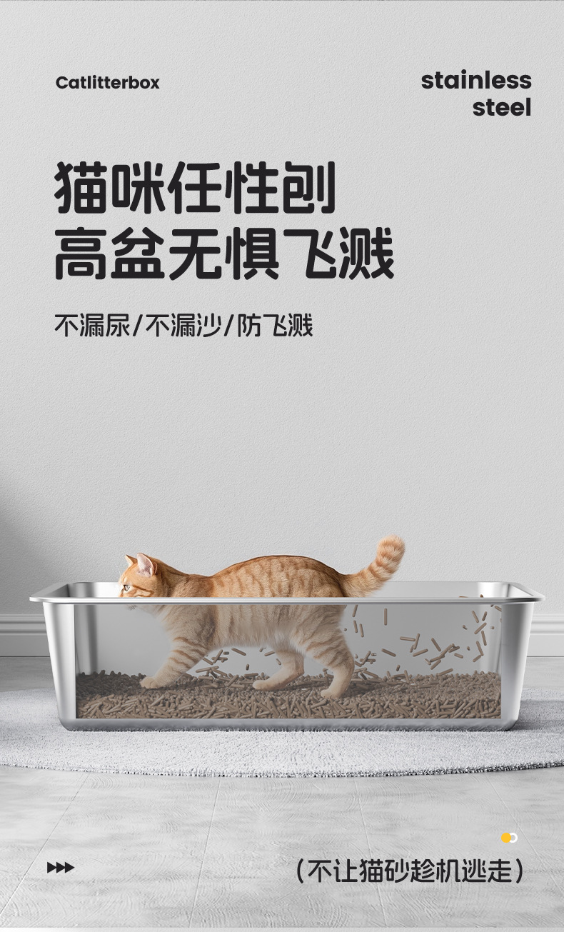 Caja de arena para gatos de acero inoxidable, caja de arena para gatos abierta de gran tamaño, resistente a la salpicadura, caja de heces para gatos, baño para gatos, suministros para mascotas