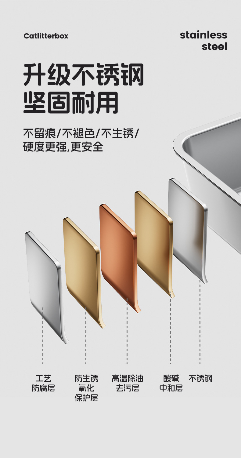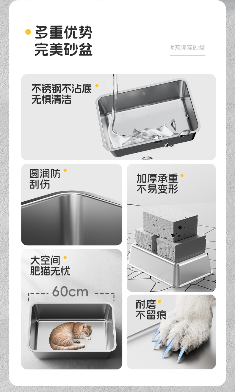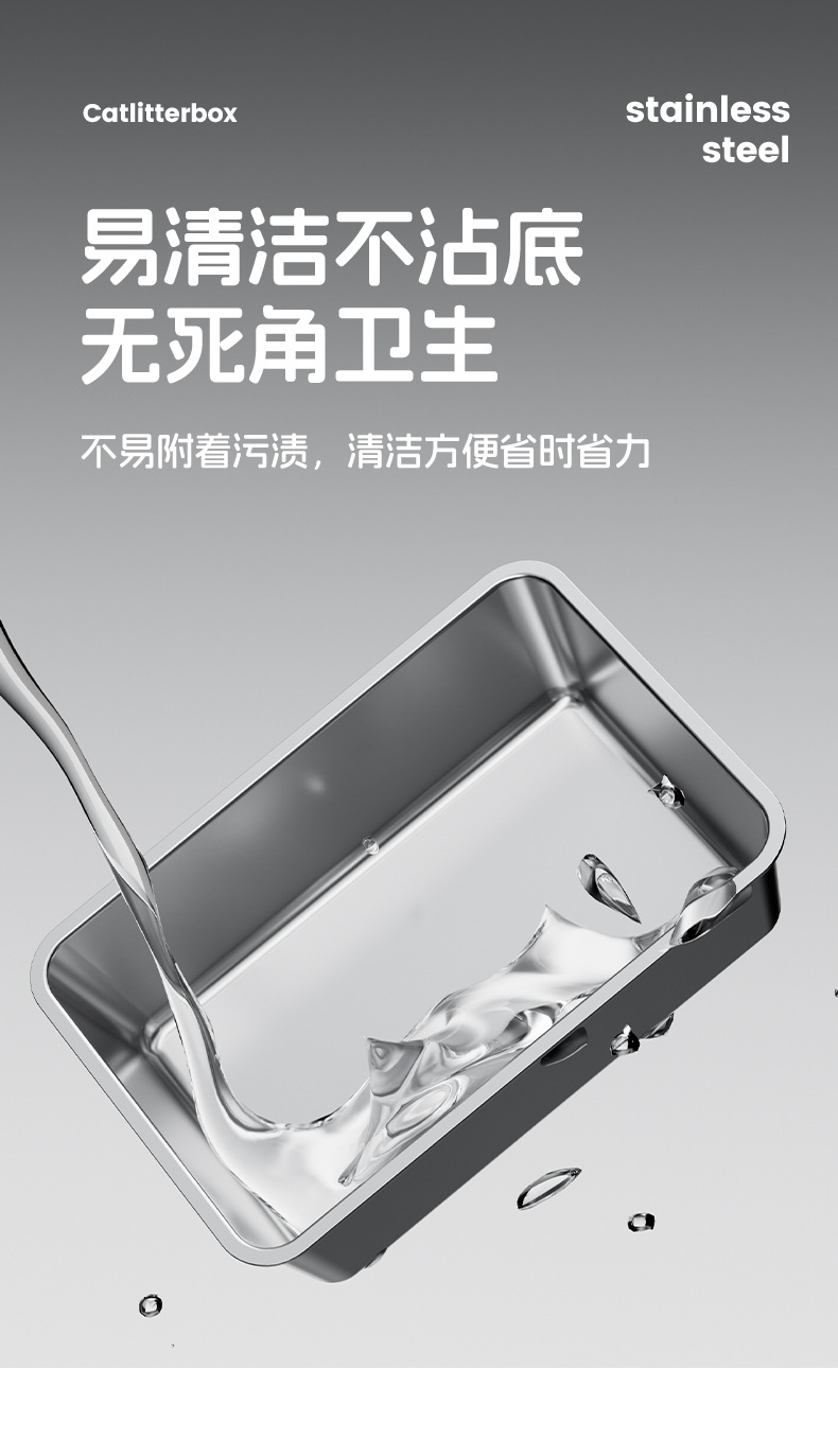 Caja de arena para gatos de acero inoxidable, caja de arena para gatos abierta de gran tamaño, resistente a la salpicadura, caja de heces para gatos, baño para gatos, suministros para mascotas