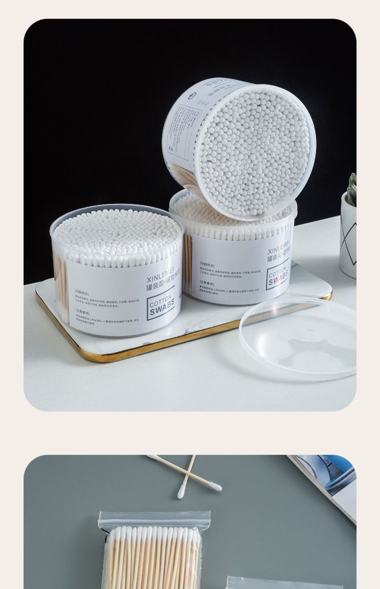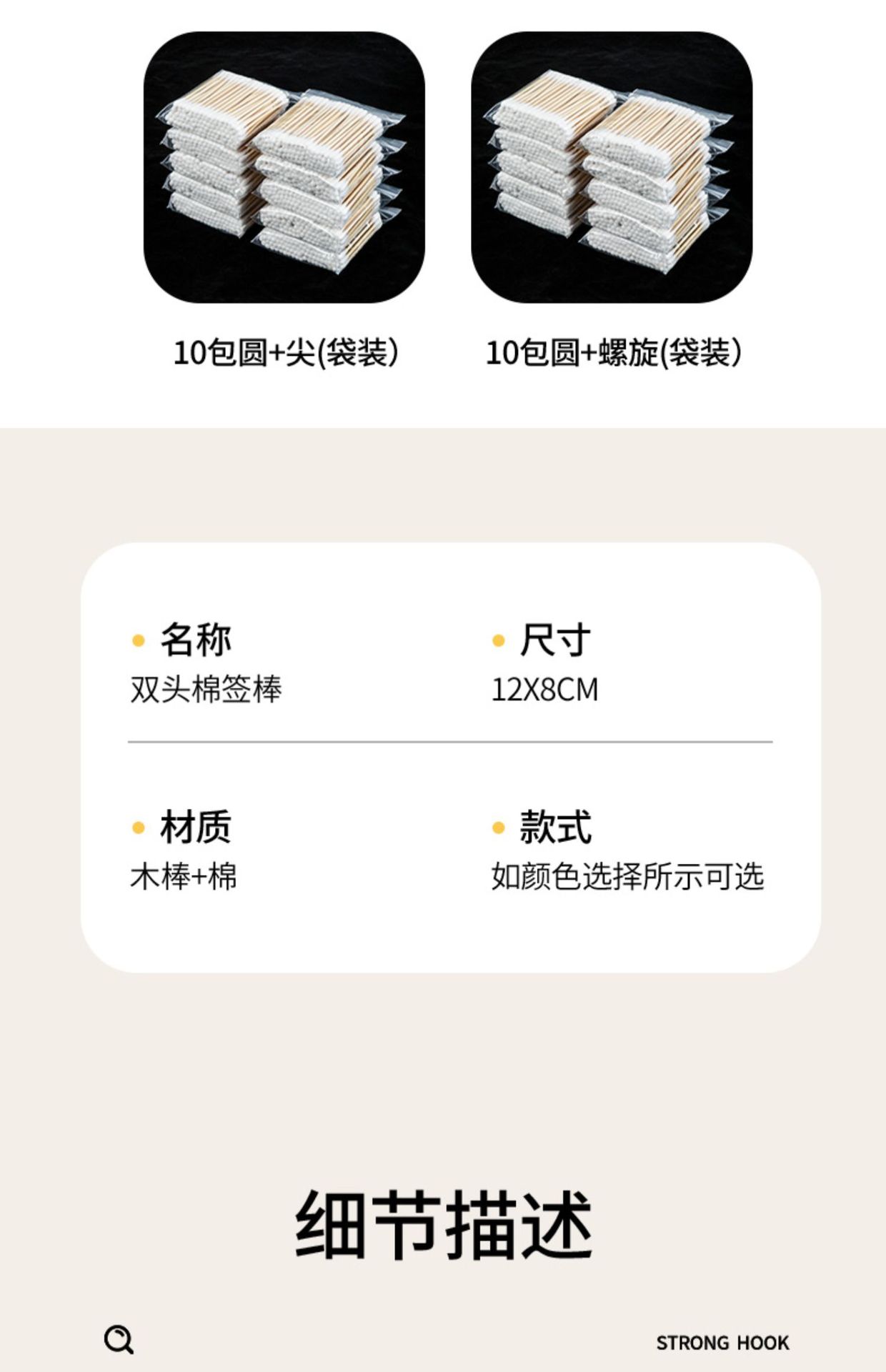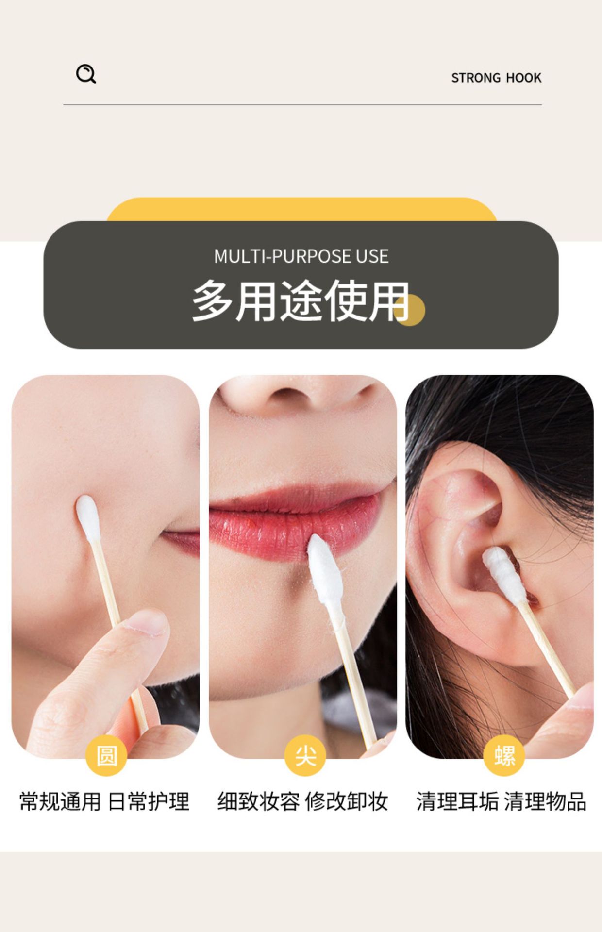 Hisopo de algodón de doble cabeza limpieza del oído maquillaje desechable hisopo de algodón sanitario limpieza del oído recoger hisopo de algodón palo de madera para uso doméstico