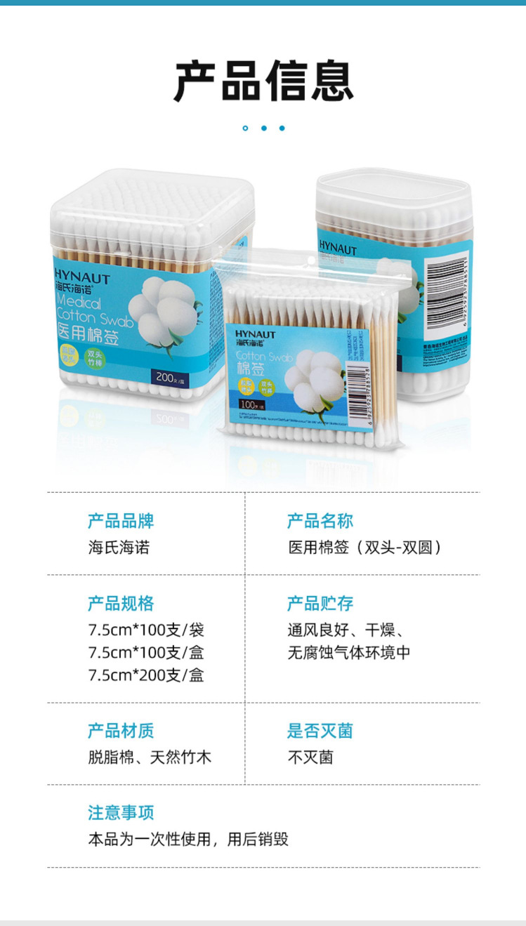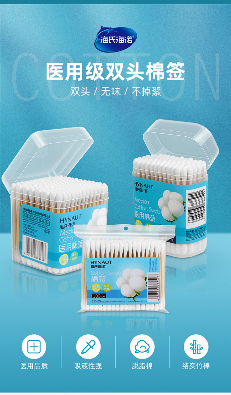 Haishi hainuo hisopo de algodón de doble cabeza redonda puntiaguda algodón absorbente desechable palo maquillaje viaje hisopo de algodón portátil oreja recogiendo