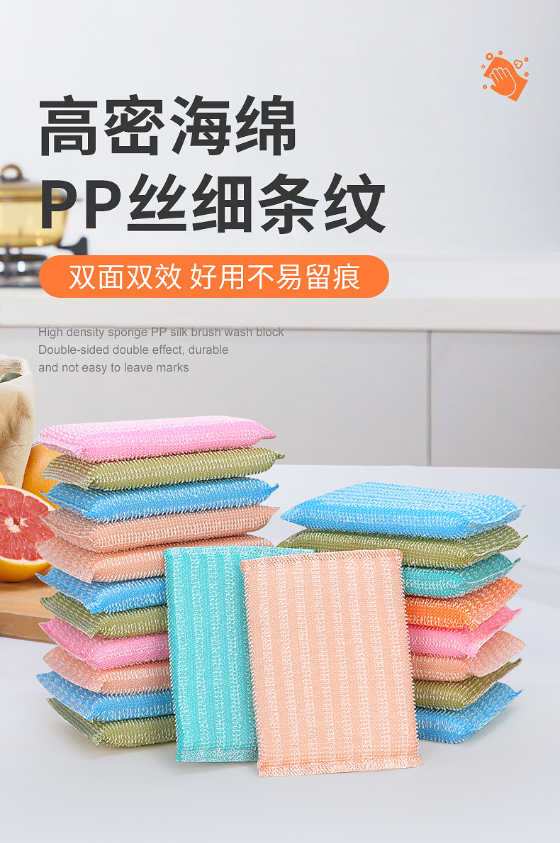 Limpiador de esponja en nombre del cepillo de rayas de seda PP transfronterizo rey de lavado de platos bloque de esponja de limpieza de cocina fabricante de paños de cocina