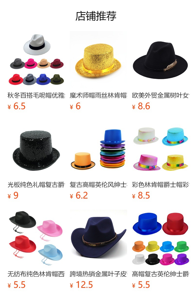 Europa y los Estados Unidos multicolor sombrero de vaquero occidental extranjero espectáculo de escenario cool festival de sombrero de jazz